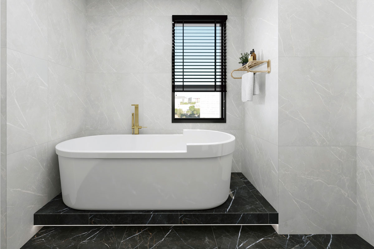 Unleash a sense of refined luxury with Atlas. Meticulously crafted for sophistication, these tiles redefine contemporary elegance. The polished finish adds depth and character, while matt creates an ambiance of understated luxury. Available in 600×1200 (8 unique faces) and 600×600 (9 unique faces), offering natural variation for a refined and consistent finish across floors and walls.