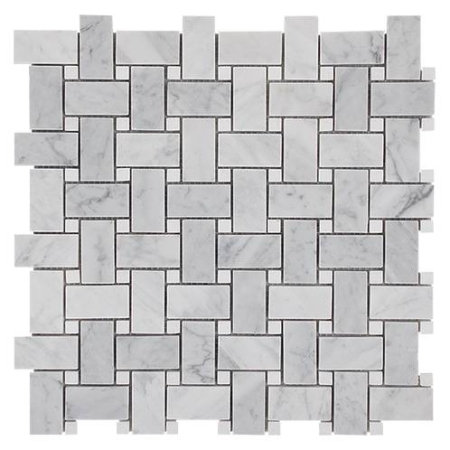 This collection features the classic interlocking pattern of Carrara marble, accented with delicate contrast dots for a traditional aesthetic. These honed mosaics are a superb choice for feature wall applications, bringing a classic, high-end finish to sophisticated bathroom and kitchen designs. Please check individual product for tile thickness.