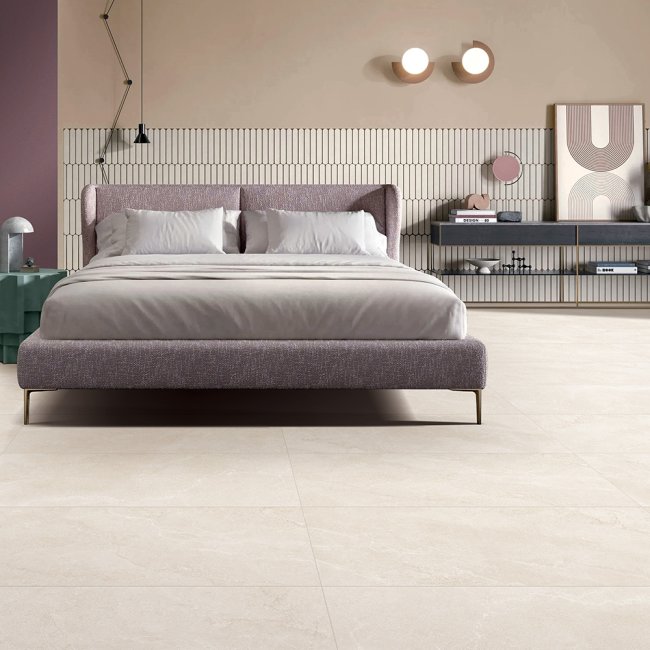 Hilton stone-look porcelain tile is suitable for floors and walls, both indoors and outdoors. Available in multiple formats: 600×1200 with 7 faces, 600×600 with 14 faces, 300×600 with 28 faces, and 300×300 with 56 faces—it combines versatility with natural, varied designs for any space.