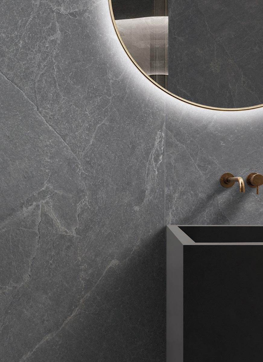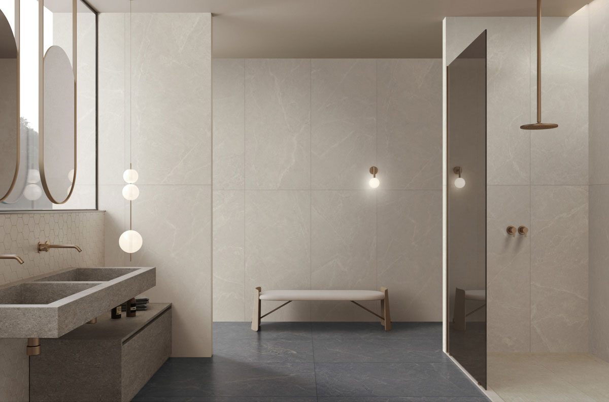 The Katrina Collection stone-look porcelain tile features a 9mm thickness and is available in P4 slip rating with multiple formats, including 600×600 with 20 faces and 600×1200 with 10 faces, offering natural variation and a refined, versatile design for any space. Katrina embodies quiet sophistication, bringing the natural beauty of stone into contemporary spaces with effortless refinement. Defined by soft movement, layered tones and a velvety matte surface, Katrina offers a timeless foundation for both residential and commercial interiors.