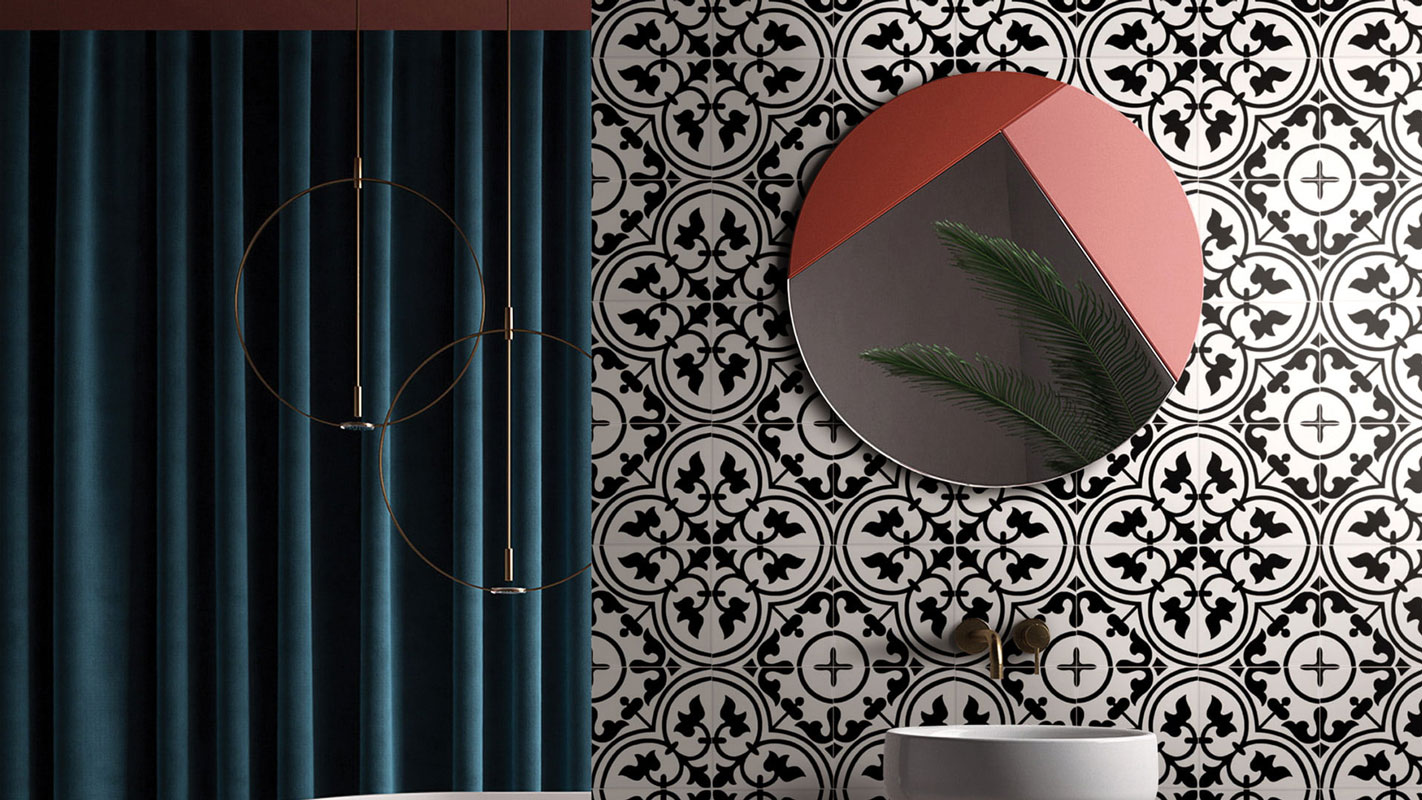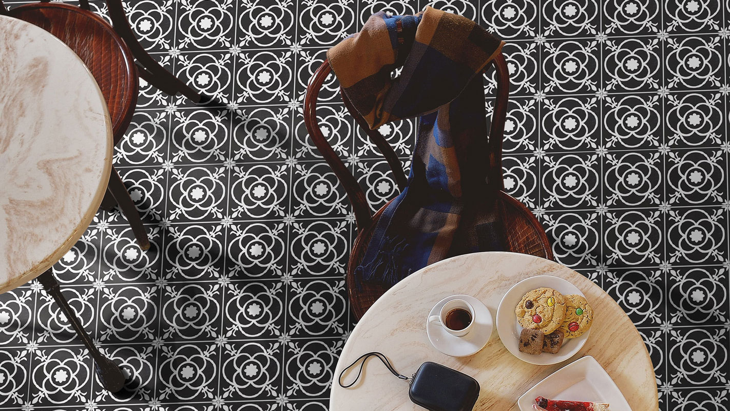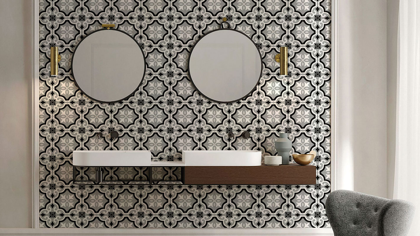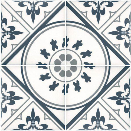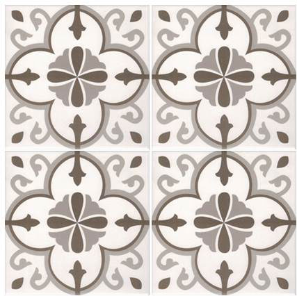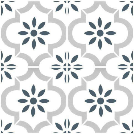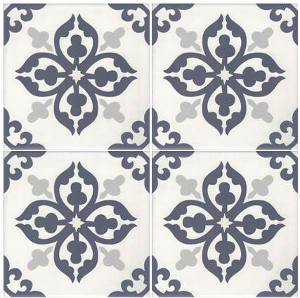 Lilli Pilli encaustic-look porcelain tile is suitable for both walls and floors, featuring an 8 mm thickness for a durable and stylish finish