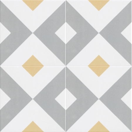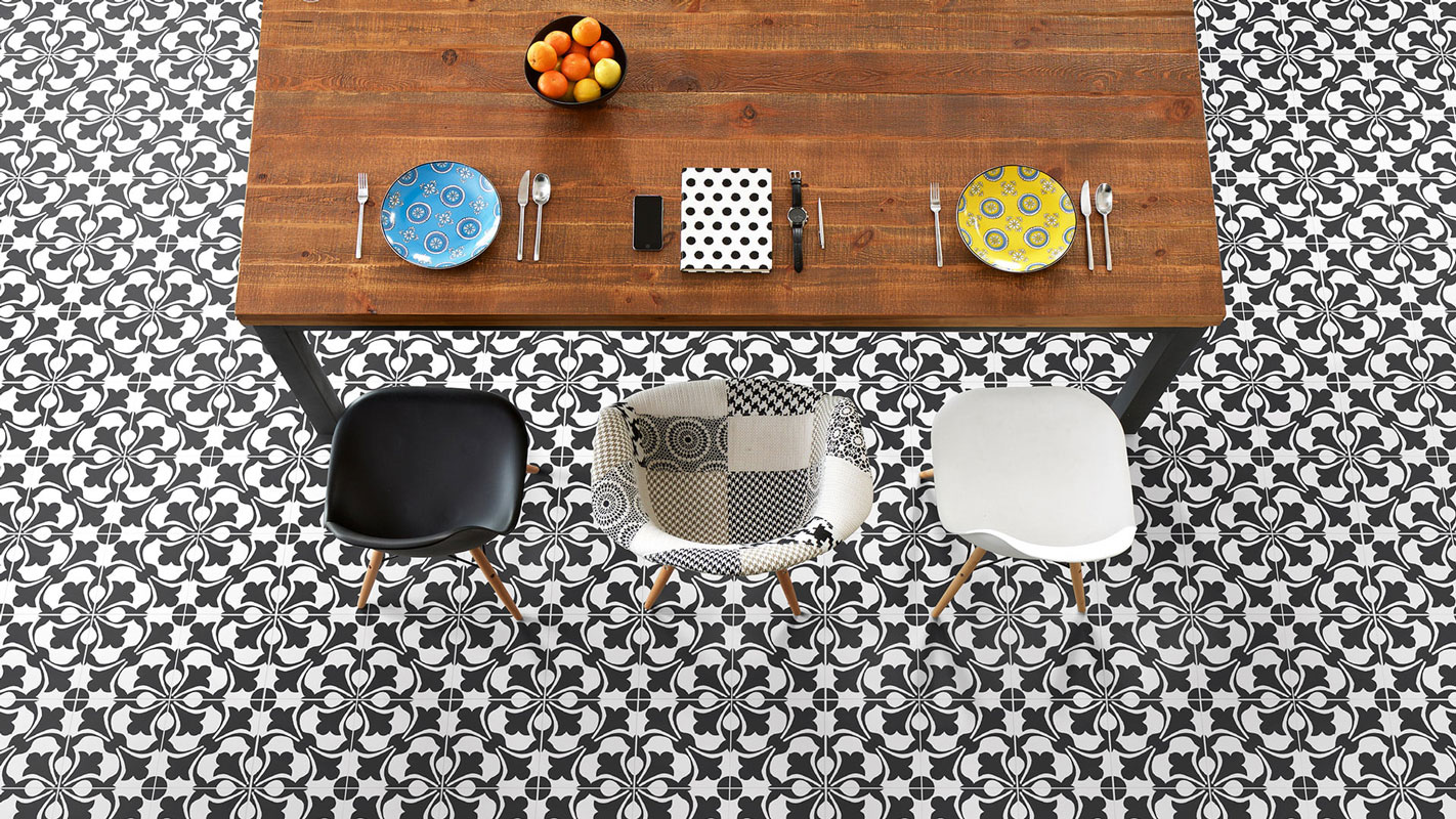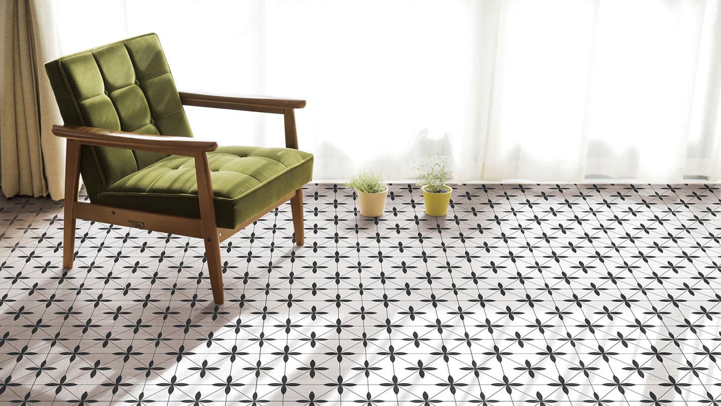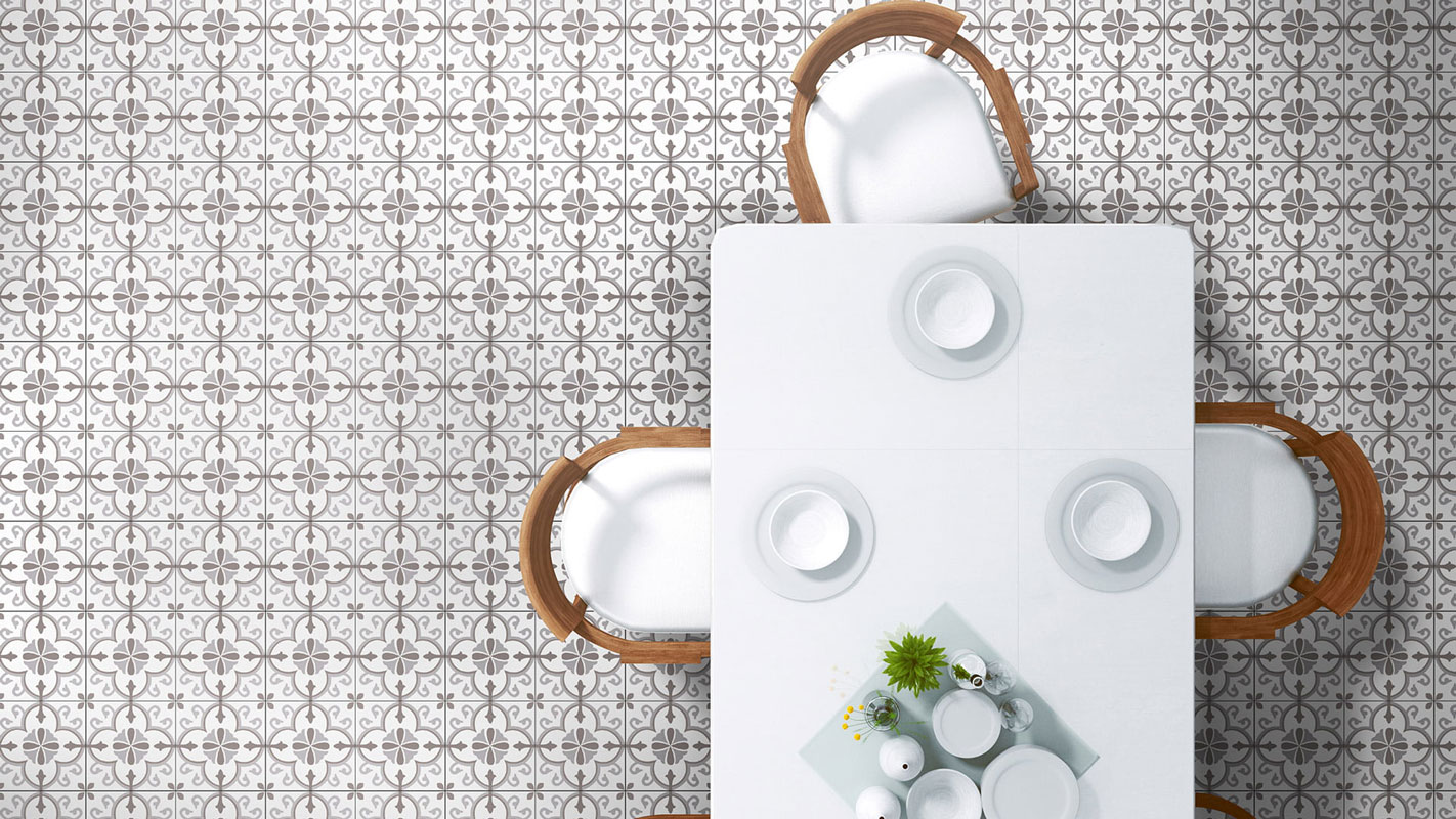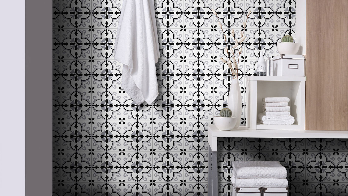 Lilli Pilli encaustic-look porcelain tile is suitable for both walls and floors, featuring an 8 mm thickness for a durable and stylish finish