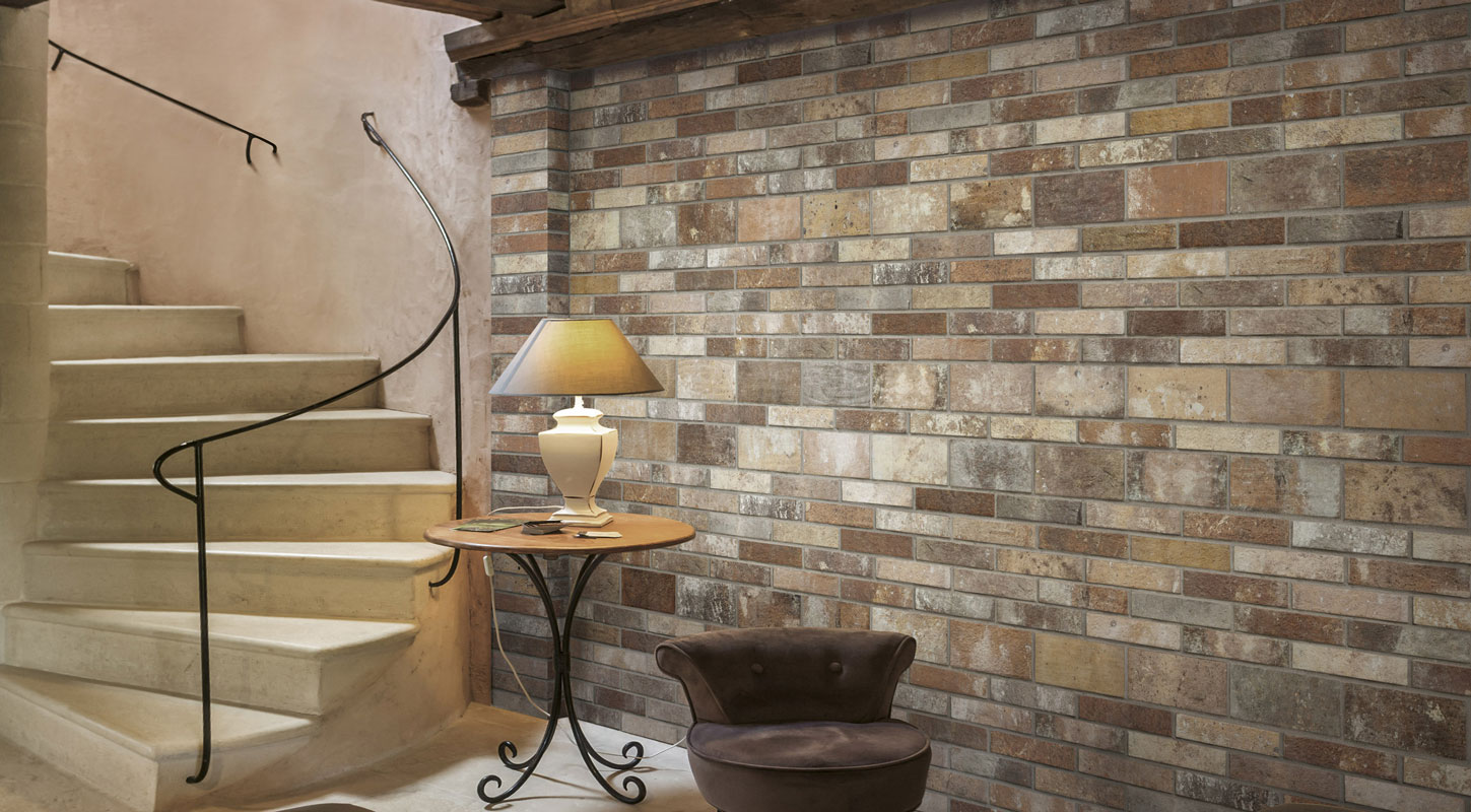 Lincoln Brick has an 8 mm thickness, a structured finish with a slip rating of P5, a non-rectified edge, and a V4 variation. It is inspired by the production of handmade bricks fired in a furnace in London. In the early 20th century, the surfaces were shaded with a variety of colours. The appeal of traditional craftsmanship, with its imperfections in the glazes resulting from unstable temperatures, is reflected in this porcelain stoneware, which captures genuine character using leading-edge ceramic technologies.