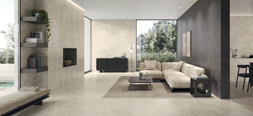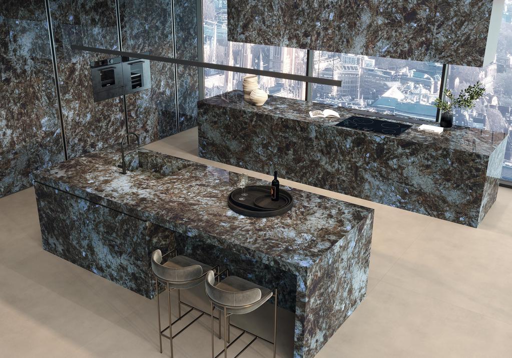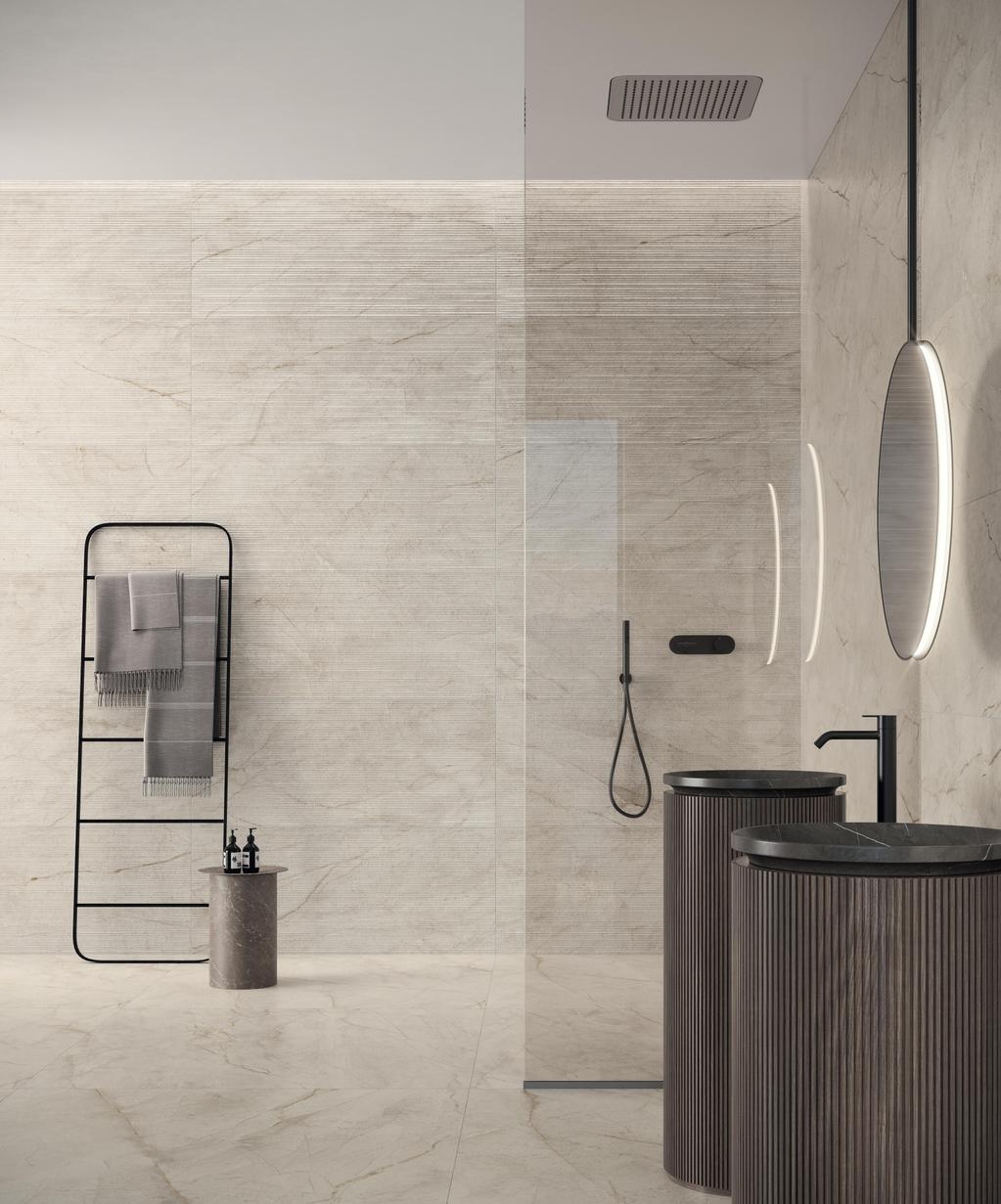 An explosion of beauty and character with new marble-effect porcelain stoneware surfaces that showcase their full beauty on large slabs. A selection of wall tiles enhances the beauty of spaces, thanks to new textures developed for the occasion. Precious and rare marbles with vivid, deep colours that, like “divas,” are alluring, recognisable, and stand out with their strong personalities.