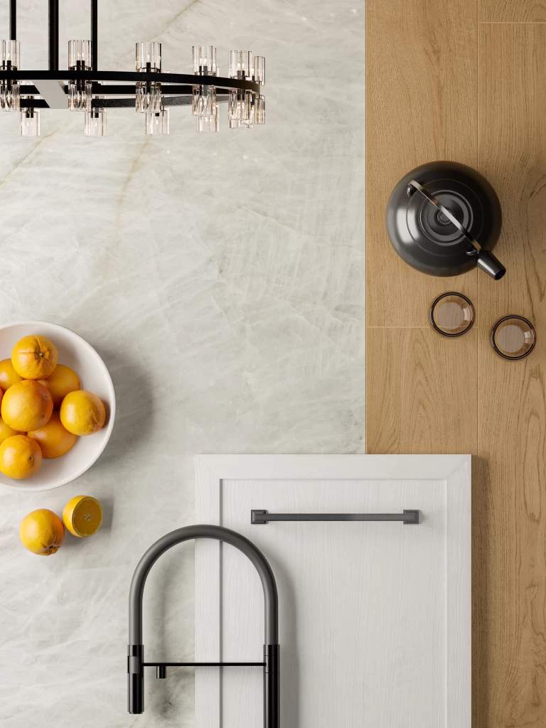 Inspired by the rareness and most evocative wonders of nature, the Marvel Gala collection is a jewel, and its surfaces recall journeys to pristine places. Some of the most compelling locations on earth – the glaciers of Alaska, the Californian desert, the green of the Amazon, the turquoise of the tropical seas, the black of the Icelandic volcanoes inspired the selection of the natural stones of the collection.