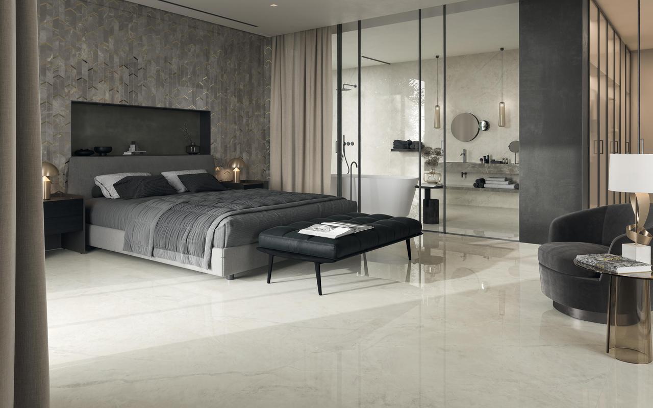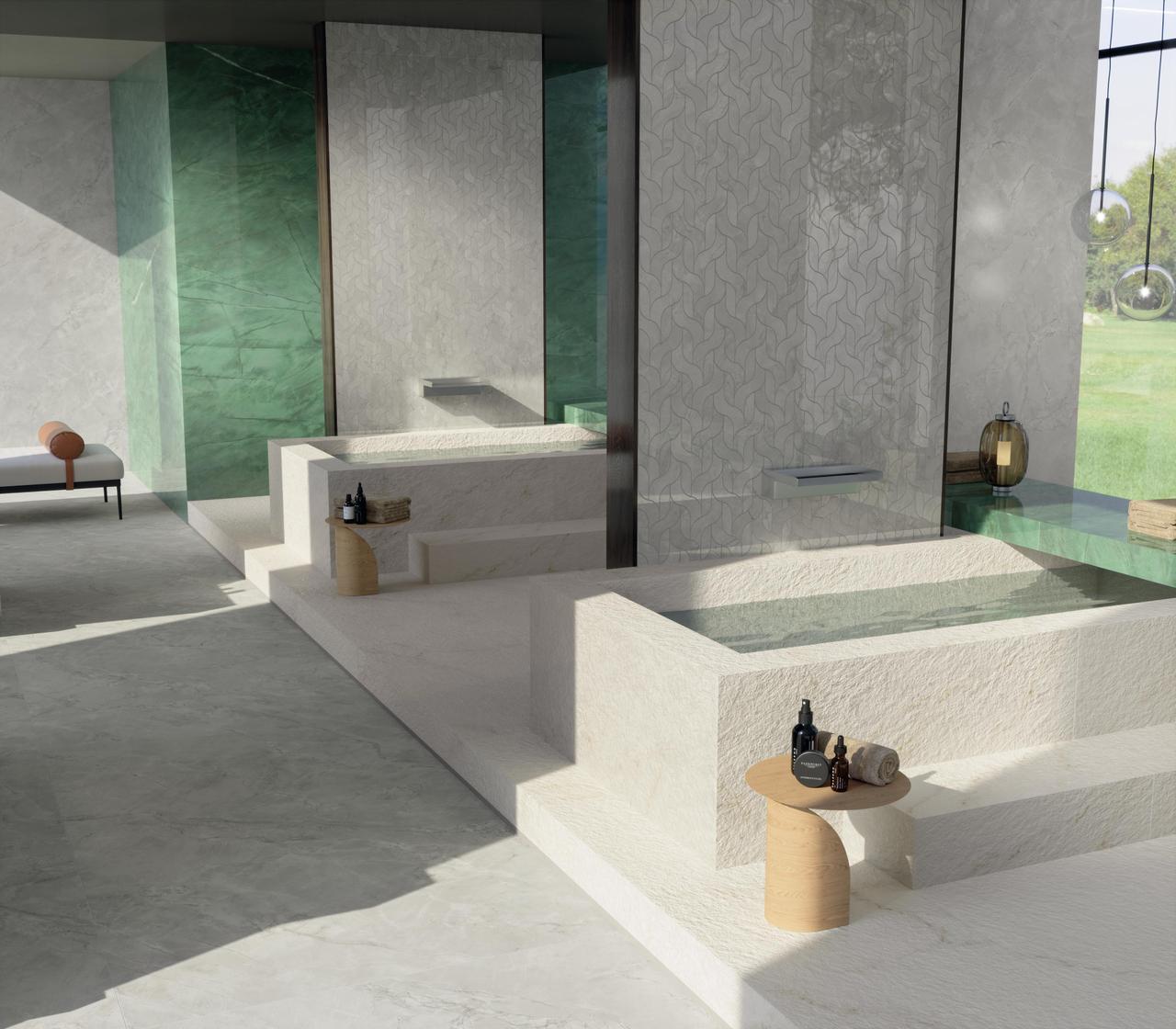 The surfaces are enriched with Sensitech’s technological innovation. Achieved using a method patented in Italy, the finish combines superior slip resistance with a surface that is pleasant to the touch and easy to clean. Marvel X is a range of surfaces inspired by contemporary marbles, designed to pay close attention to every detail. Soft shading, graphic depth, and authenticity create an extraordinary marble effect to be experienced on a daily basis.
