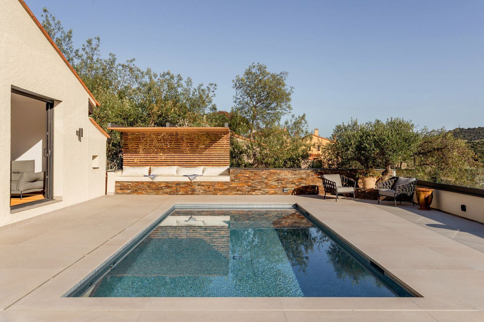 The colour of the water varies depending on the tone of the mosaic, the volume of water, and the incidence of sunlight. According to the chosen Ezarri gresite tone, the visual effects are classified as follows: