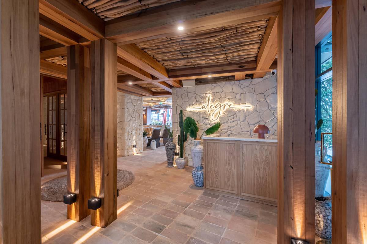 Alegre Bar and Dining showcases a refined blend of contemporary design and inviting atmosphere. The space combines warm, earthy tones with sleek, modern finishes, creating a sophisticated setting for dining and socialising. Thoughtfully selected materials and textures enhance the overall aesthetic, reflecting both style and functionality.