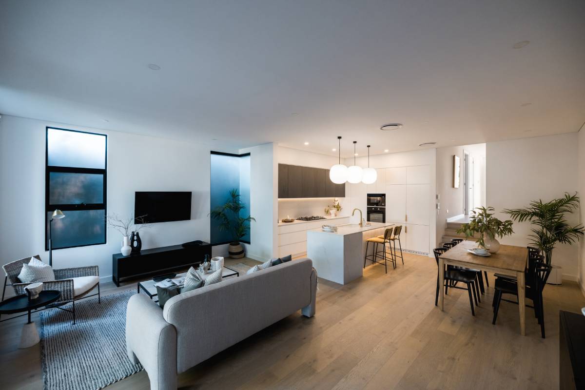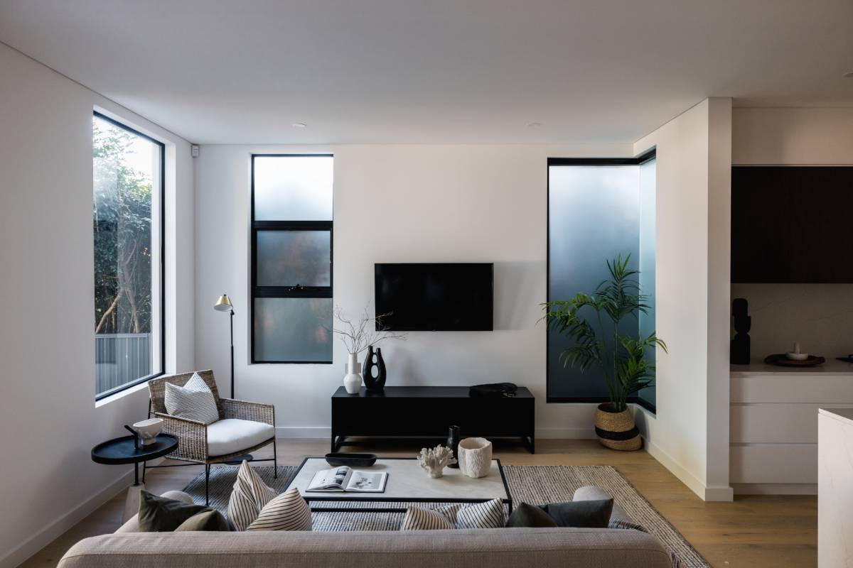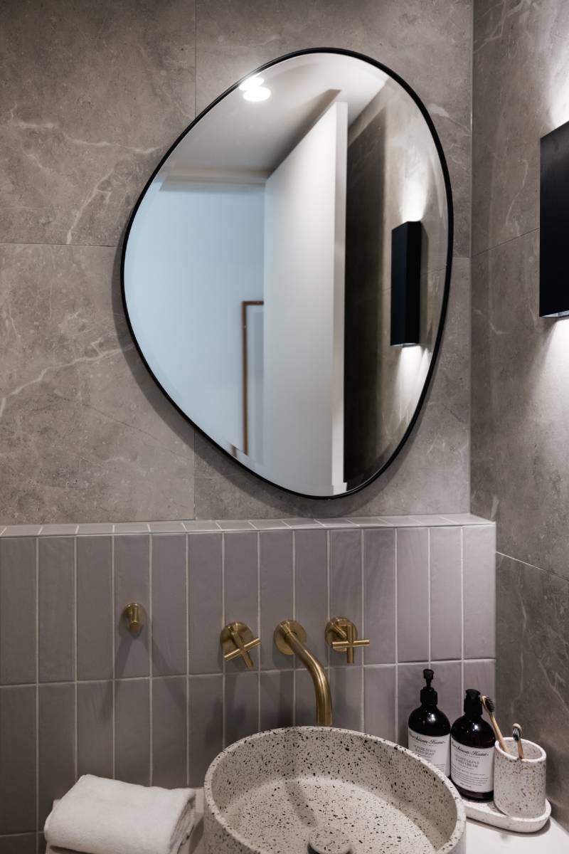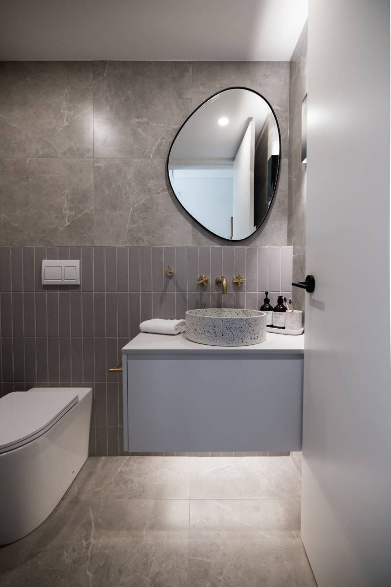 This project is inspired by Australian Bush-Modernism, designed to sit quietly within its rugged environment. The vibe is incredibly grounded, using a palette of charcoals, rusty iron, and deep greys. Slate-textured tiles and natural stone anchor the house to the site, emphasising a sense of shelter and permanence that is a hallmark of premium rural-modern architecture.