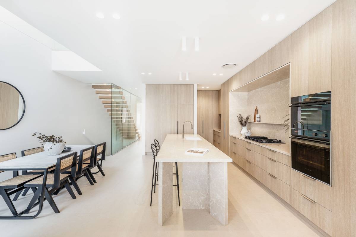 Kirkwood showcases a timeless design language, pairing tactile finishes with feature wall tiling to add sophisticated depth to the interior. The harmonious colour scheme prioritises an understated luxury feel, making it an ideal reference for premium residential builds that value enduring elegance.