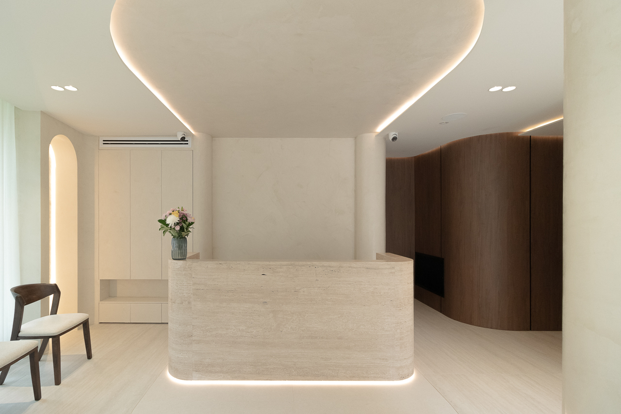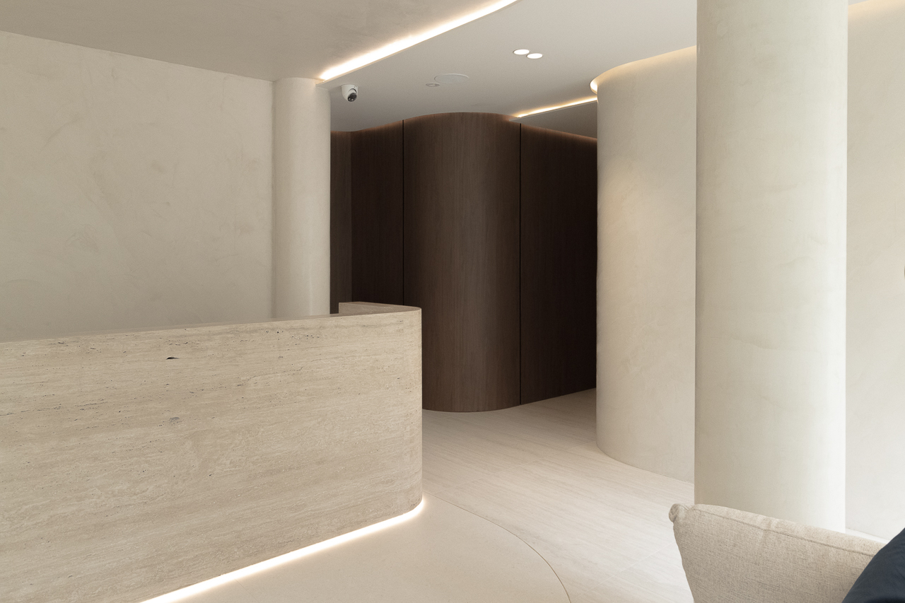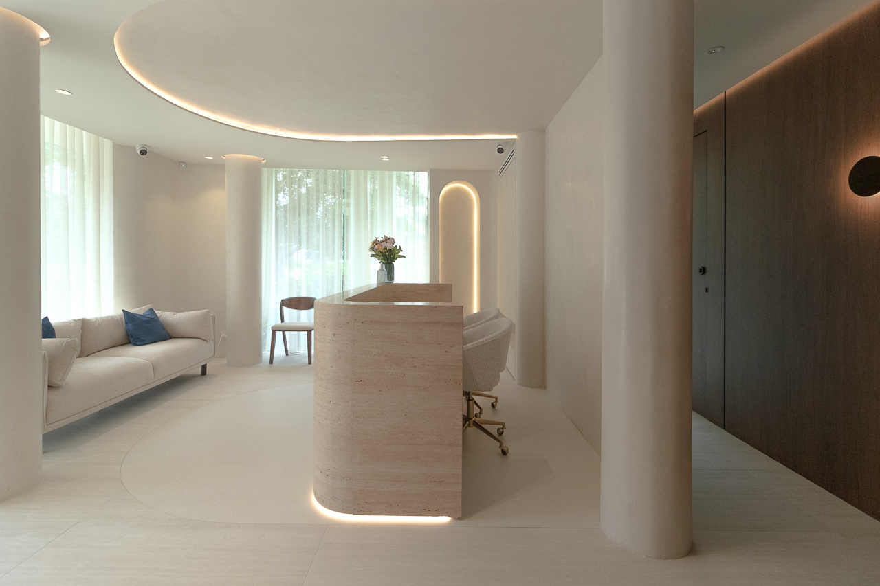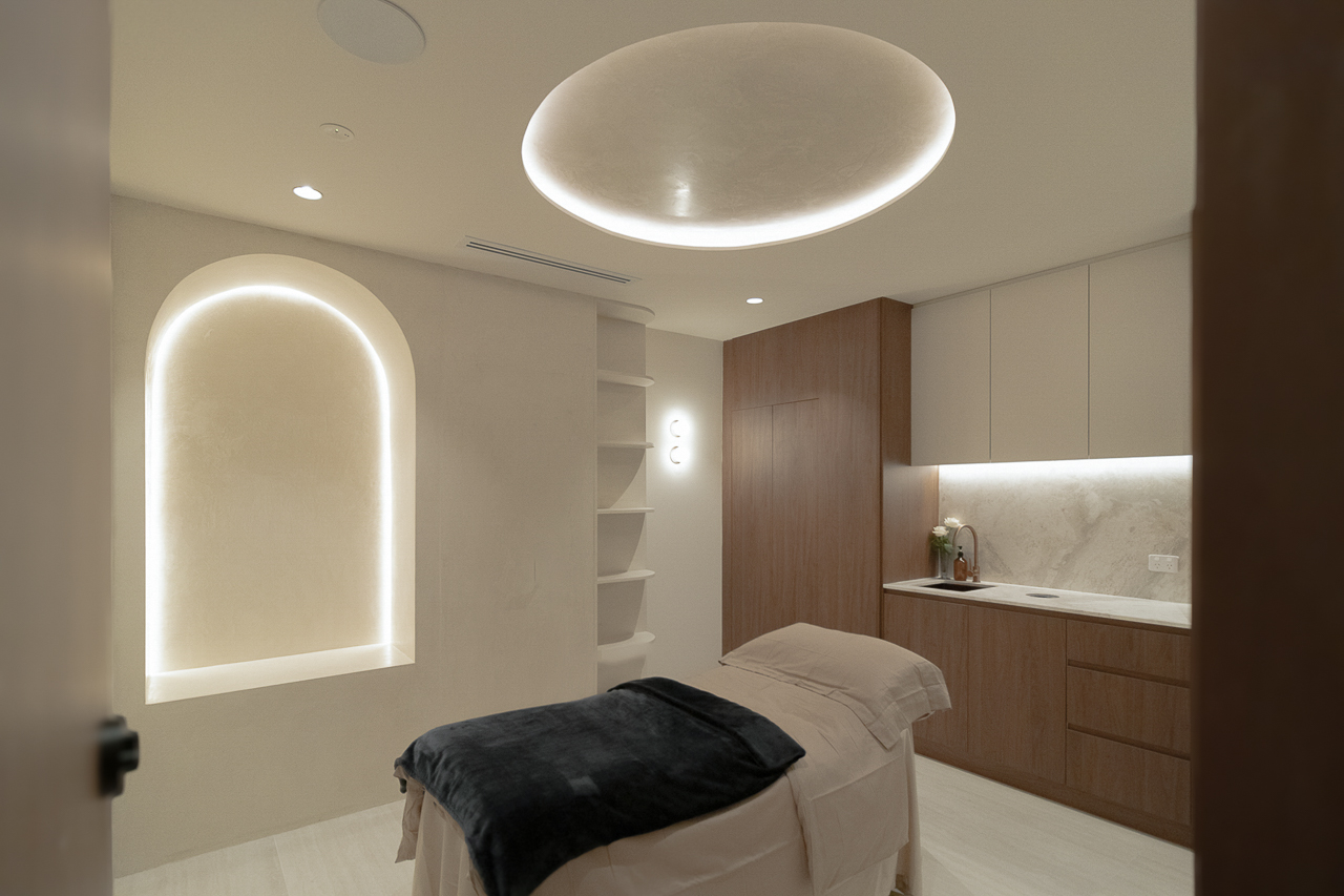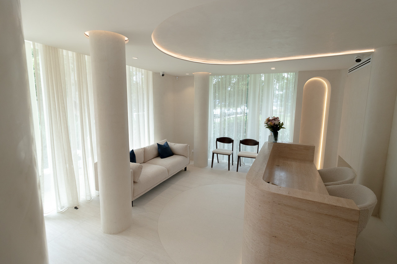 Designed for a premium wellness experience, this commercial interior utilises vein-cut travertine-look porcelain to evoke a sense of organic serenity and professional clinical excellence. The 3D textures and large-format limestone-inspired tiles create a seamless, monolithic appearance that enlarges the space while maintaining a soft, tactile quality. The neutral, “bone” and “bianco” colour palette reflects light beautifully, emphasising a clean, high-end aesthetic suitable for a boutique spa environment.