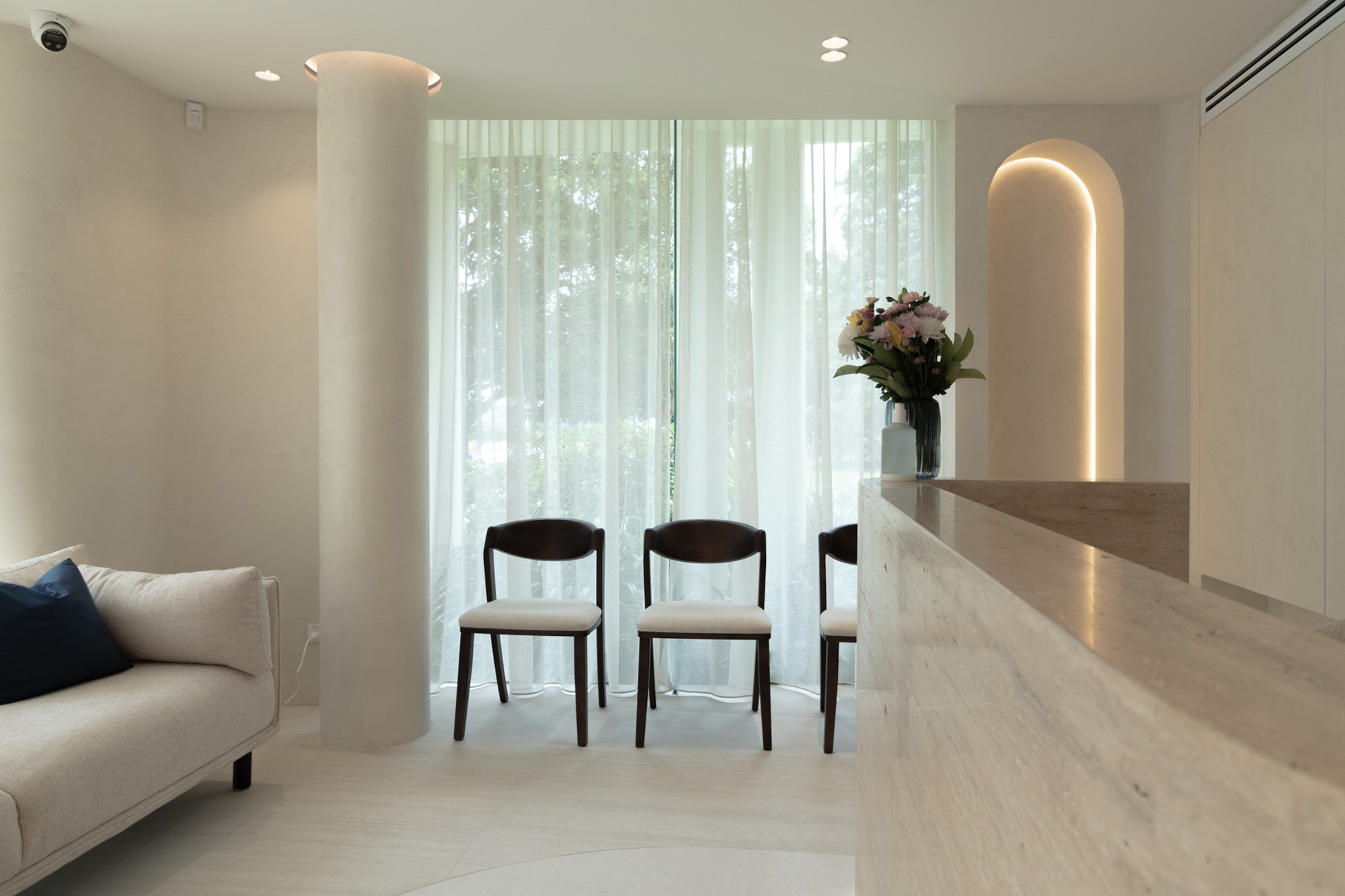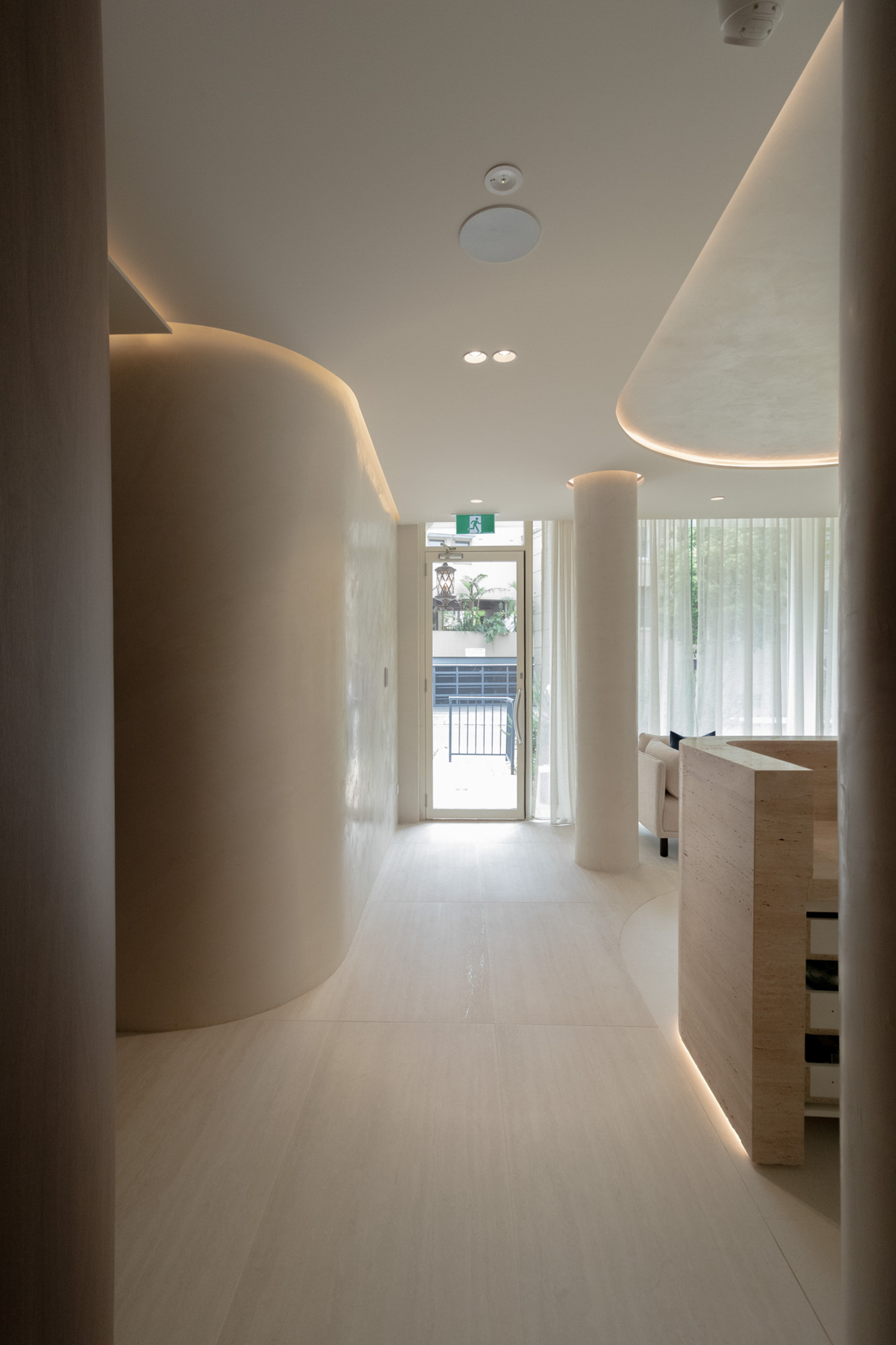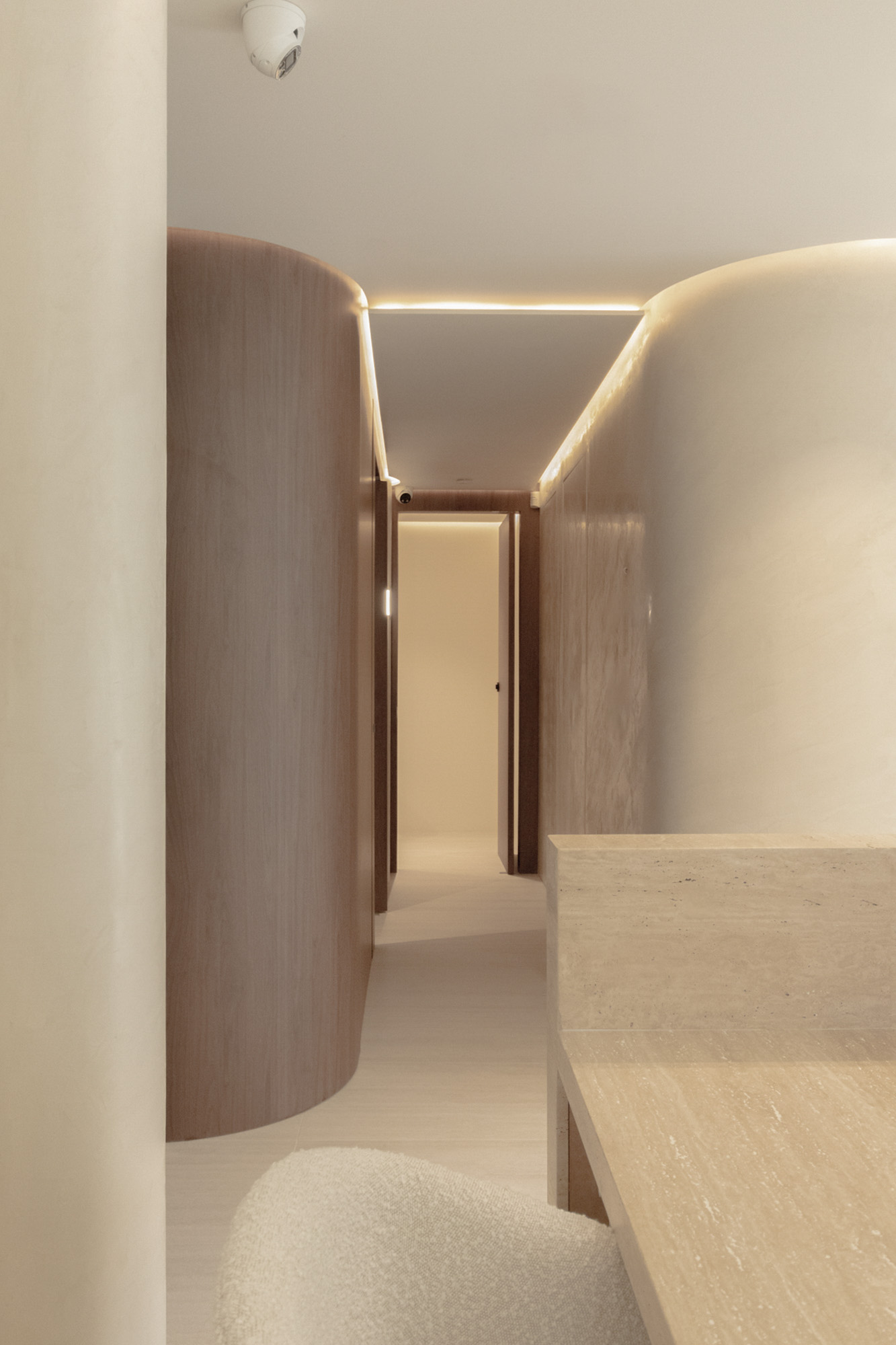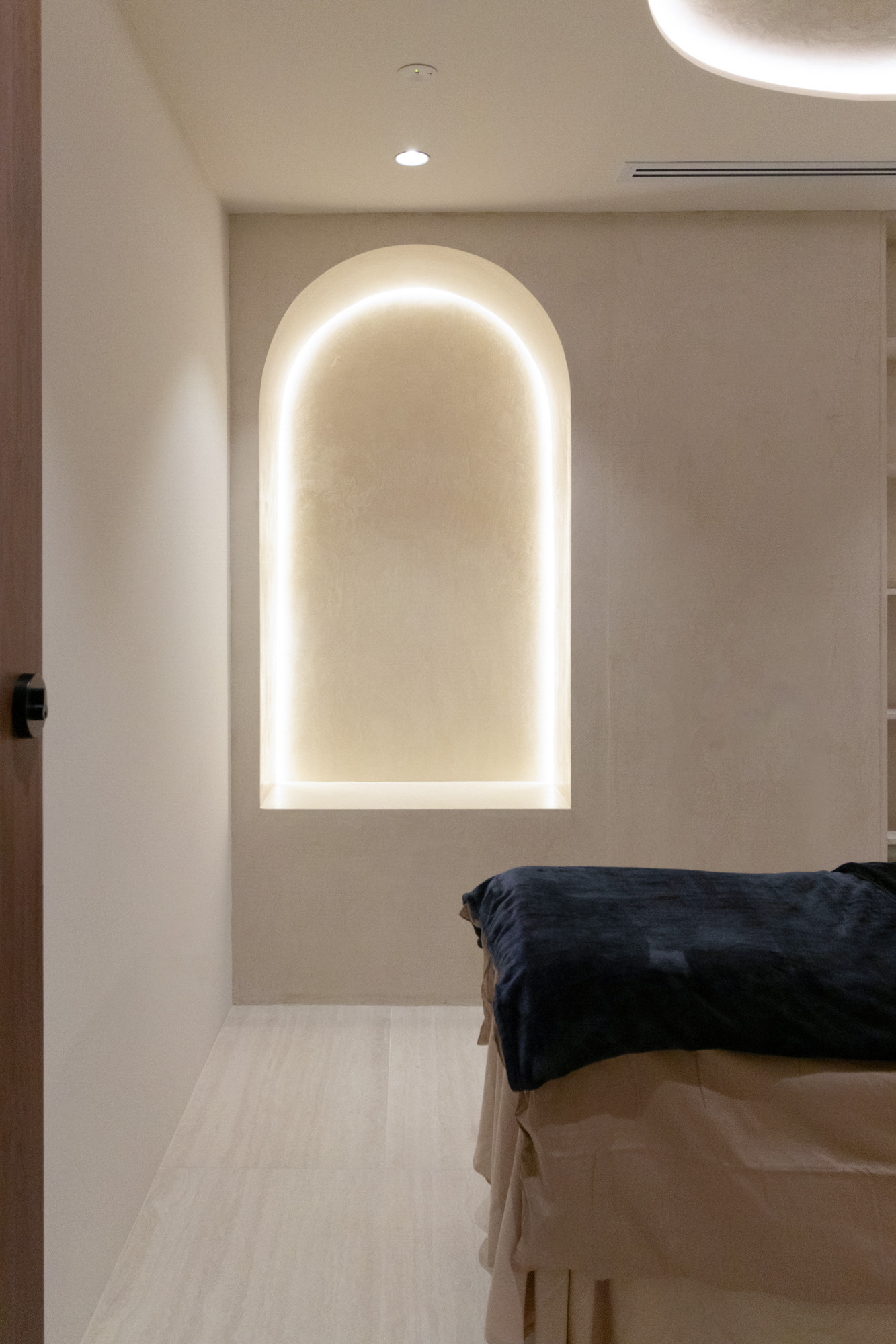 Designed for a premium wellness experience, this commercial interior utilises vein-cut travertine-look porcelain to evoke a sense of organic serenity and professional clinical excellence. The 3D textures and large-format limestone-inspired tiles create a seamless, monolithic appearance that enlarges the space while maintaining a soft, tactile quality. The neutral, “bone” and “bianco” colour palette reflects light beautifully, emphasising a clean, high-end aesthetic suitable for a boutique spa environment.