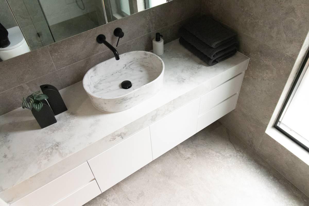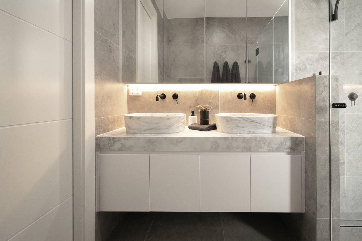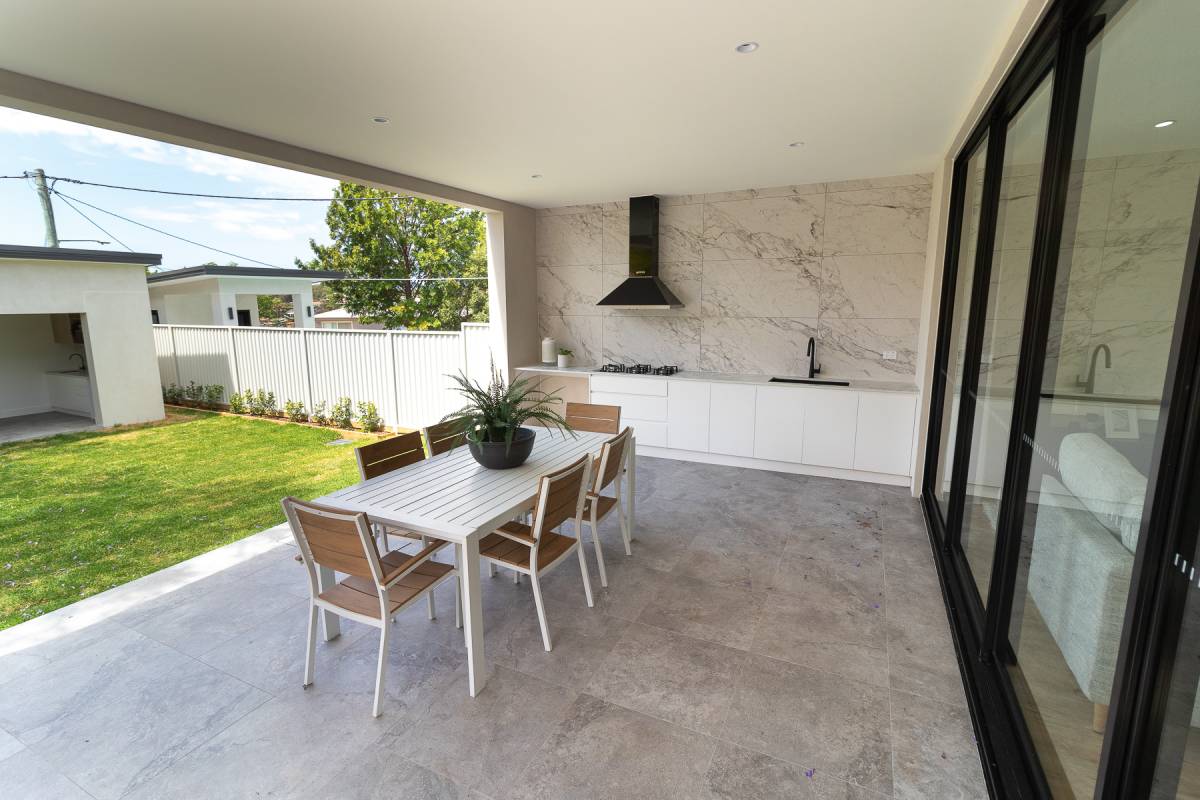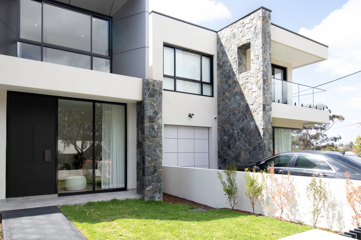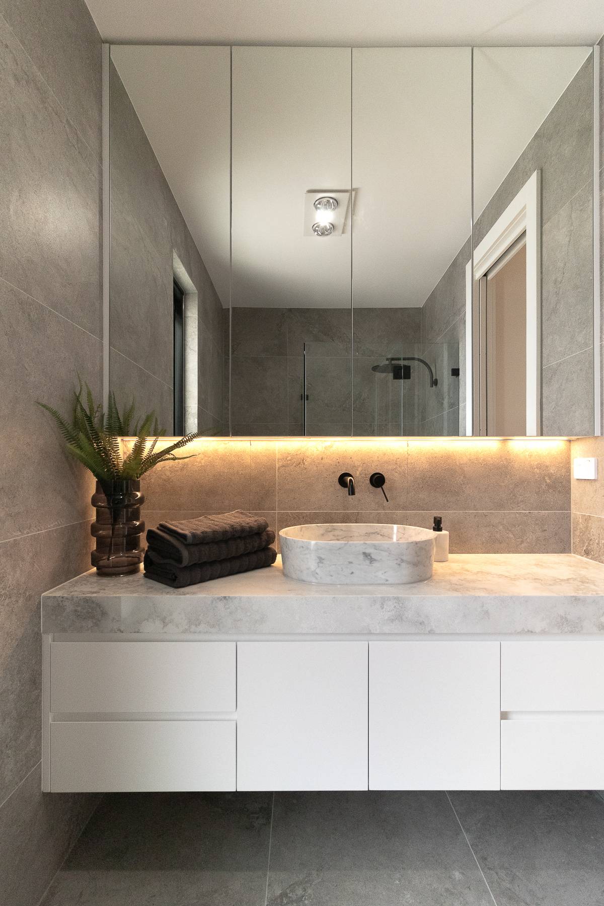 Defined by its robust yet elegant character, this project features porcelain tiles that harmonise perfectly with rugged natural stone cladding. The design prioritises a strong connection to the outdoors, using In&Out tile technology to create a unified floor plane that enhances the home’s earthy grey colour palette.