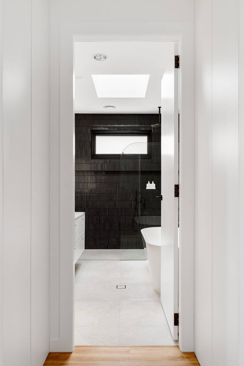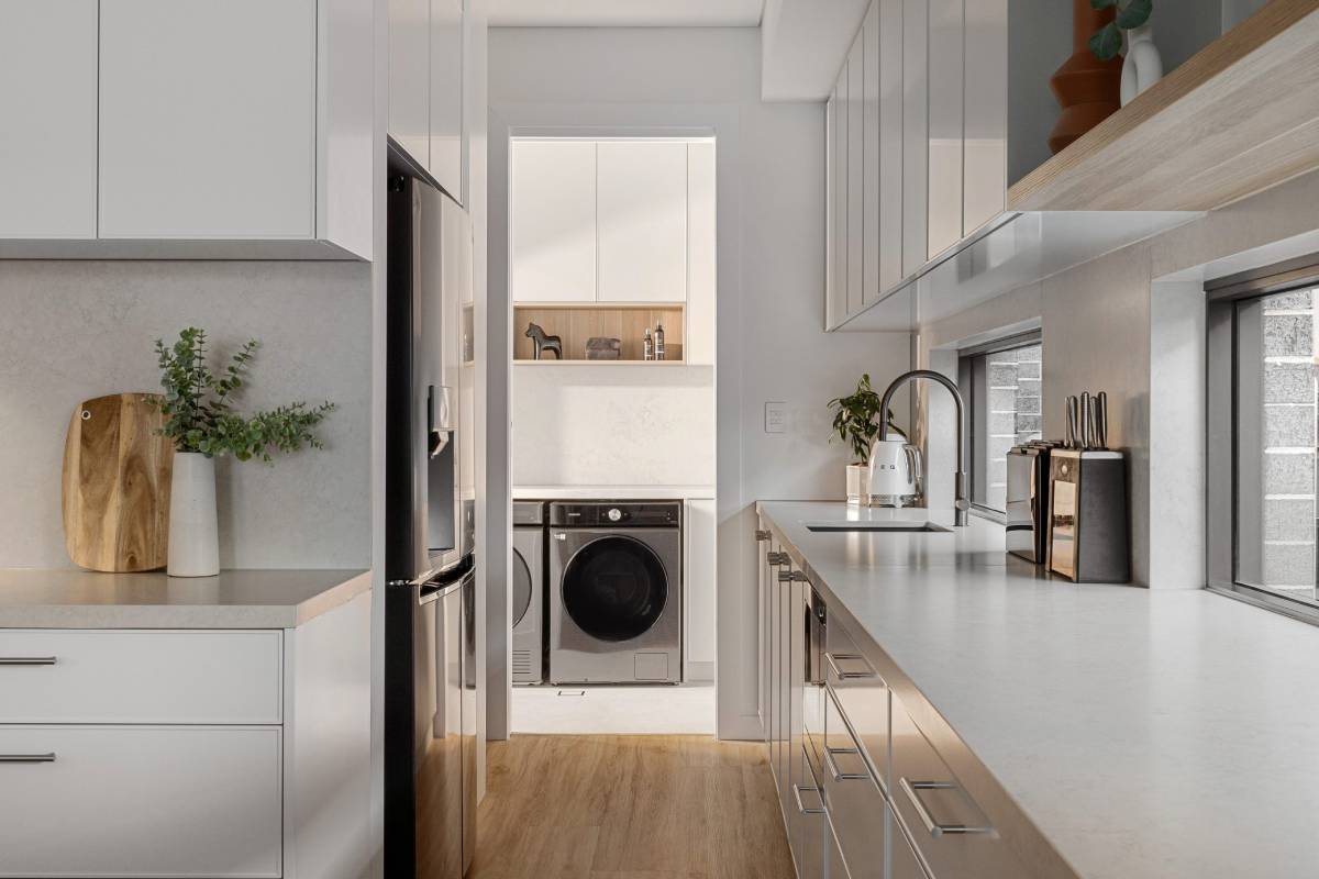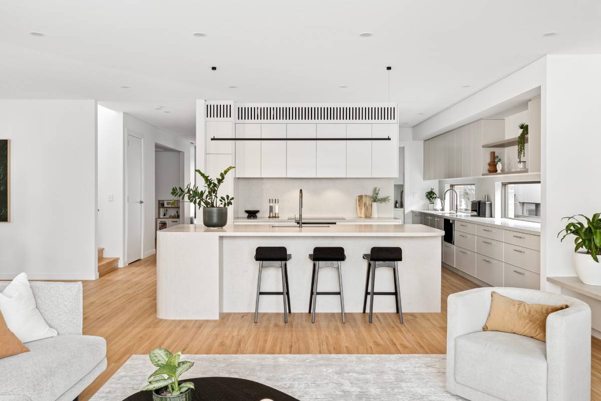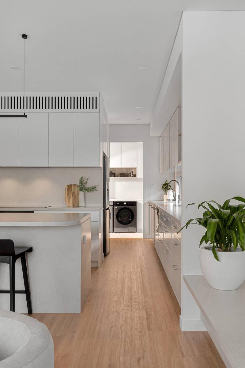 The Pagewood Project features Maestro Moon, a stone‑look porcelain tile with soft, silvery‑grey tones that create a calm, contemporary canvas underfoot and across key interior surfaces, giving the space a refined yet natural feel. Paired with Rakeen Concave Dark Grey mosaic tiles, their rich, dark grey gloss adds depth and subtle texture, offering a sophisticated contrast that elevates wall features and accents throughout the design. Together, these tiles balance serene neutral flooring with dynamic dark‑grey detailing, resulting in a cohesive palette that feels both modern and timeless.