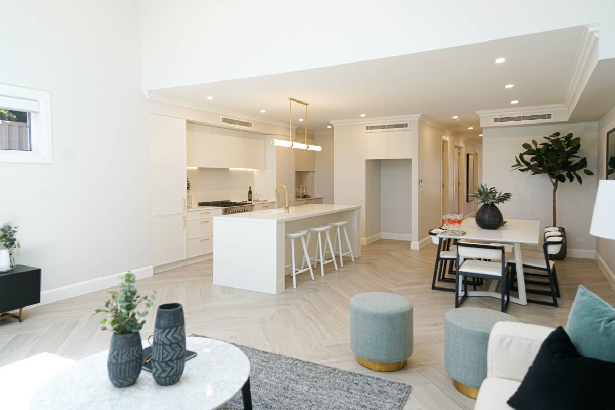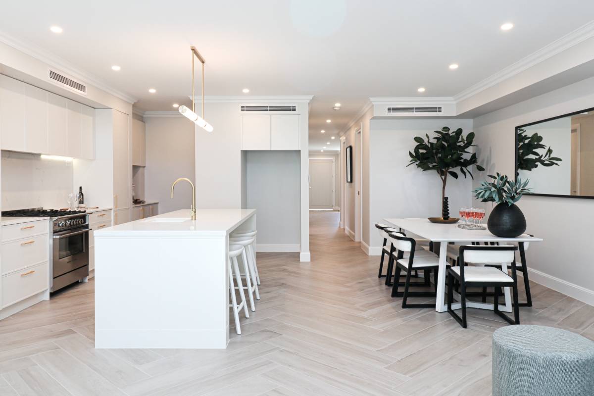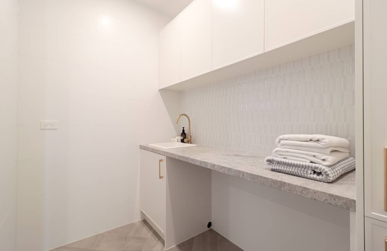 The Parraweena Project is a study in tonal minimalism, utilising a palette of greiges and silver-honed surfaces to create a calm, architectural foundation. Large-format stone-look tiles maximise the sense of volume, while the subtle shade variations of the porcelain slabs add a layer of sophisticated materiality to the open-plan layout.