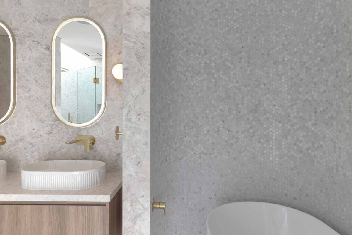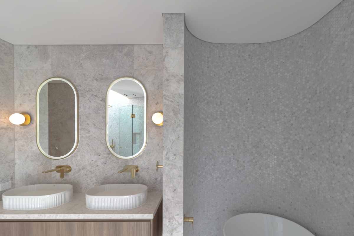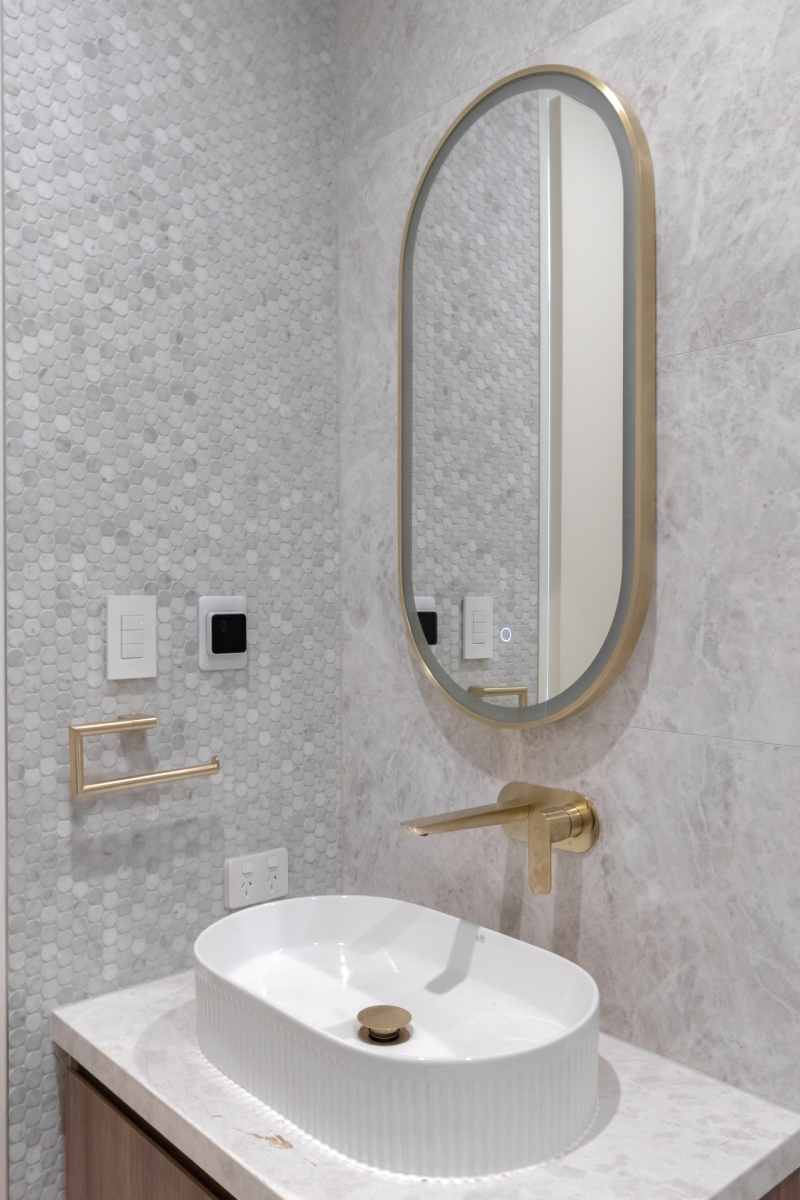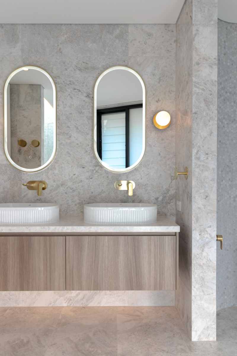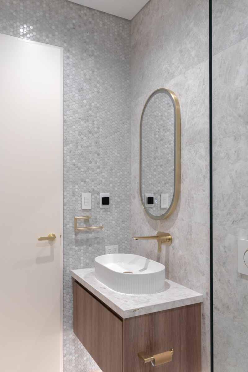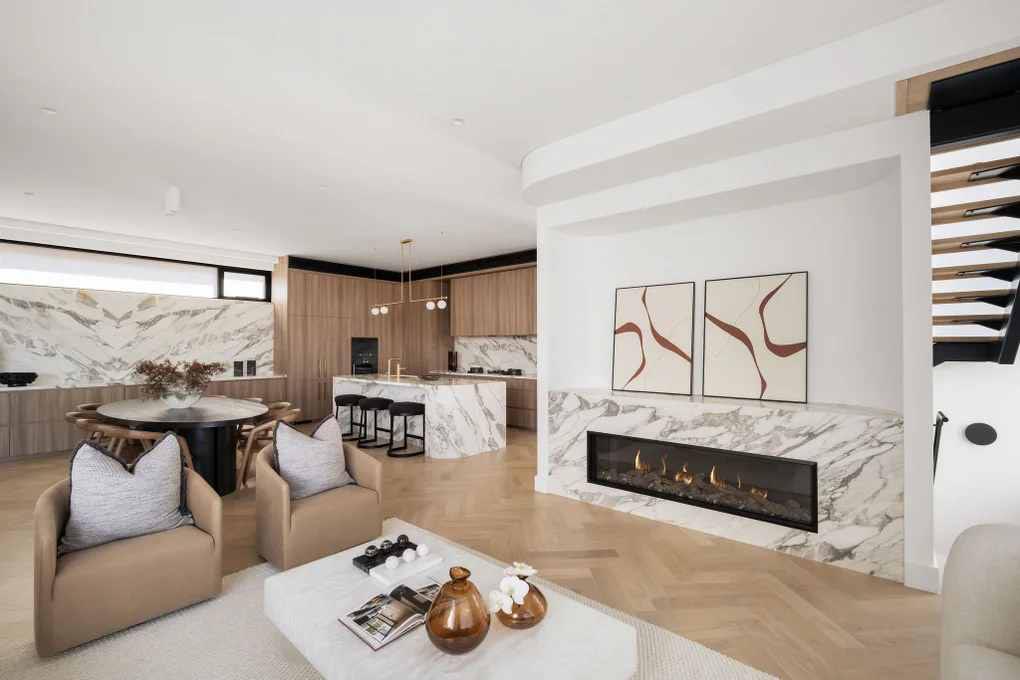The Russell Lea Project celebrates a clean, modernist aesthetic with a focus on tonal consistency and sleek surfaces. A palette of muted, neutral greys organises the space into a series of open, fluid zones that maximise natural light. The vibe is decidedly polished and professional, offering a versatile canvas that supports both vibrant family life and high-end interior styling.