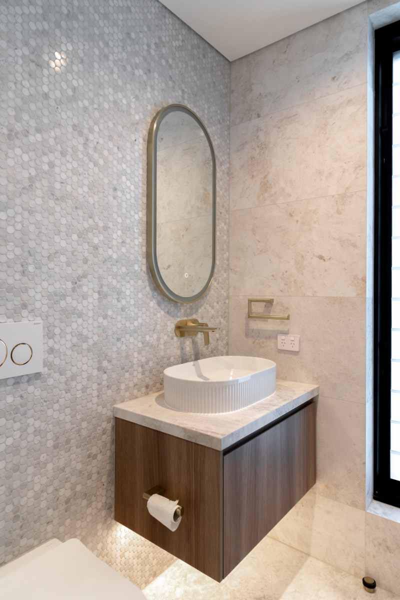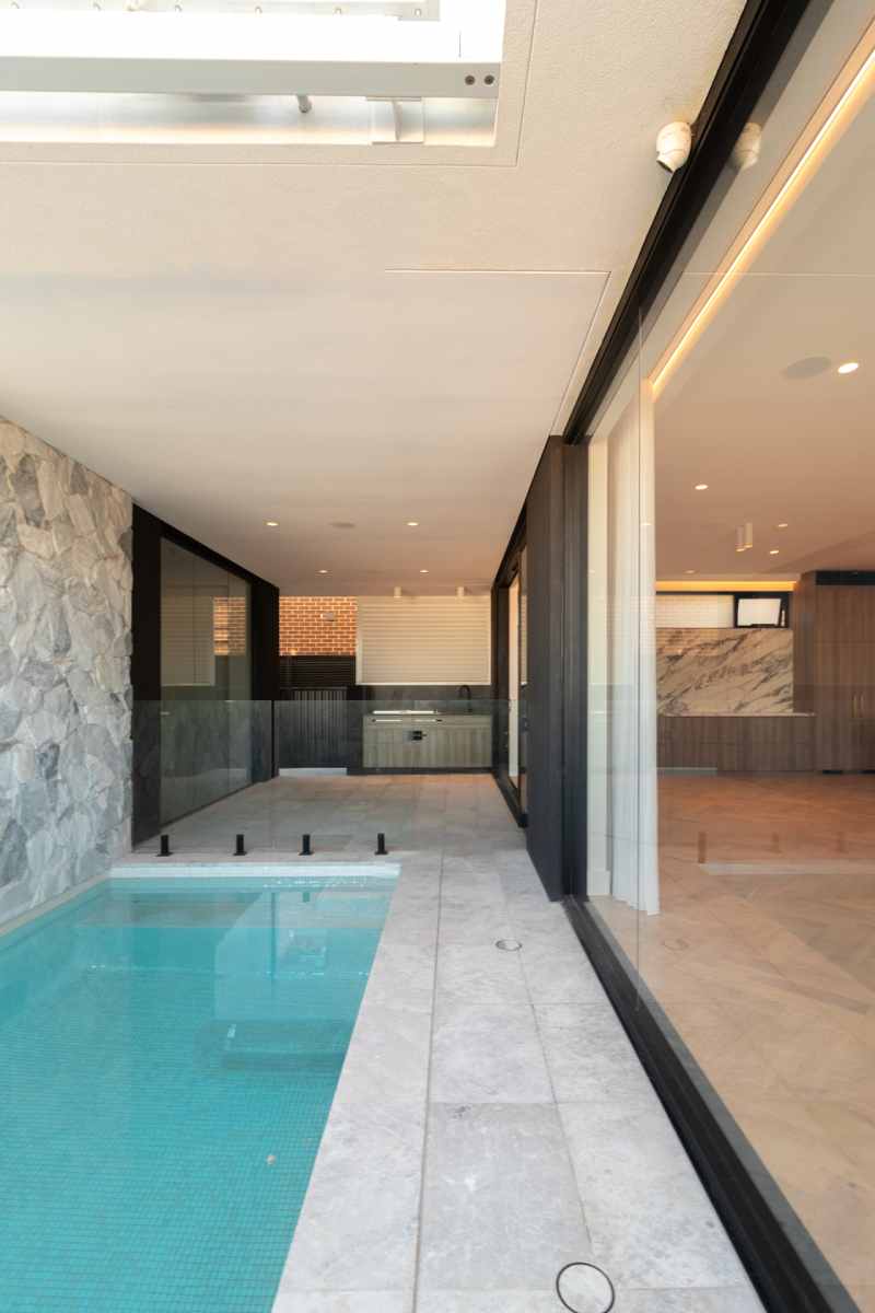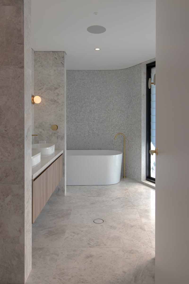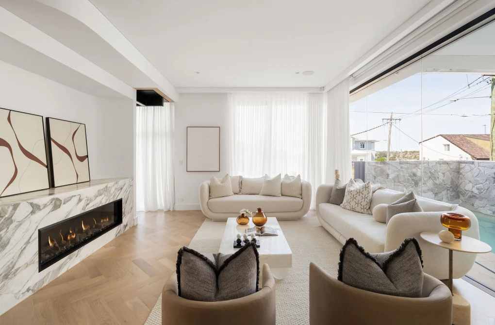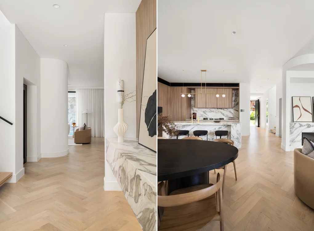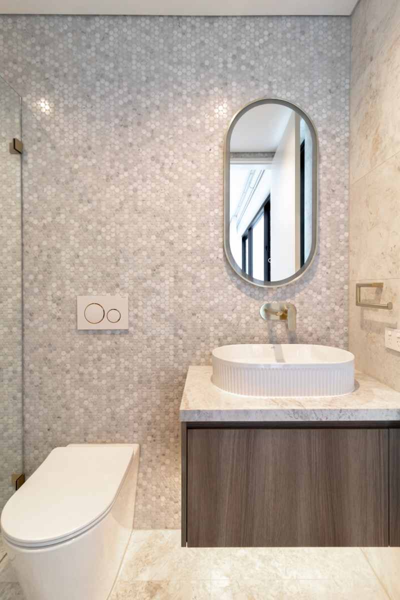 The Russell Lea Project celebrates a clean, modernist aesthetic with a focus on tonal consistency and sleek surfaces. A palette of muted, neutral greys organises the space into a series of open, fluid zones that maximise natural light. The vibe is decidedly polished and professional, offering a versatile canvas that supports both vibrant family life and high-end interior styling.