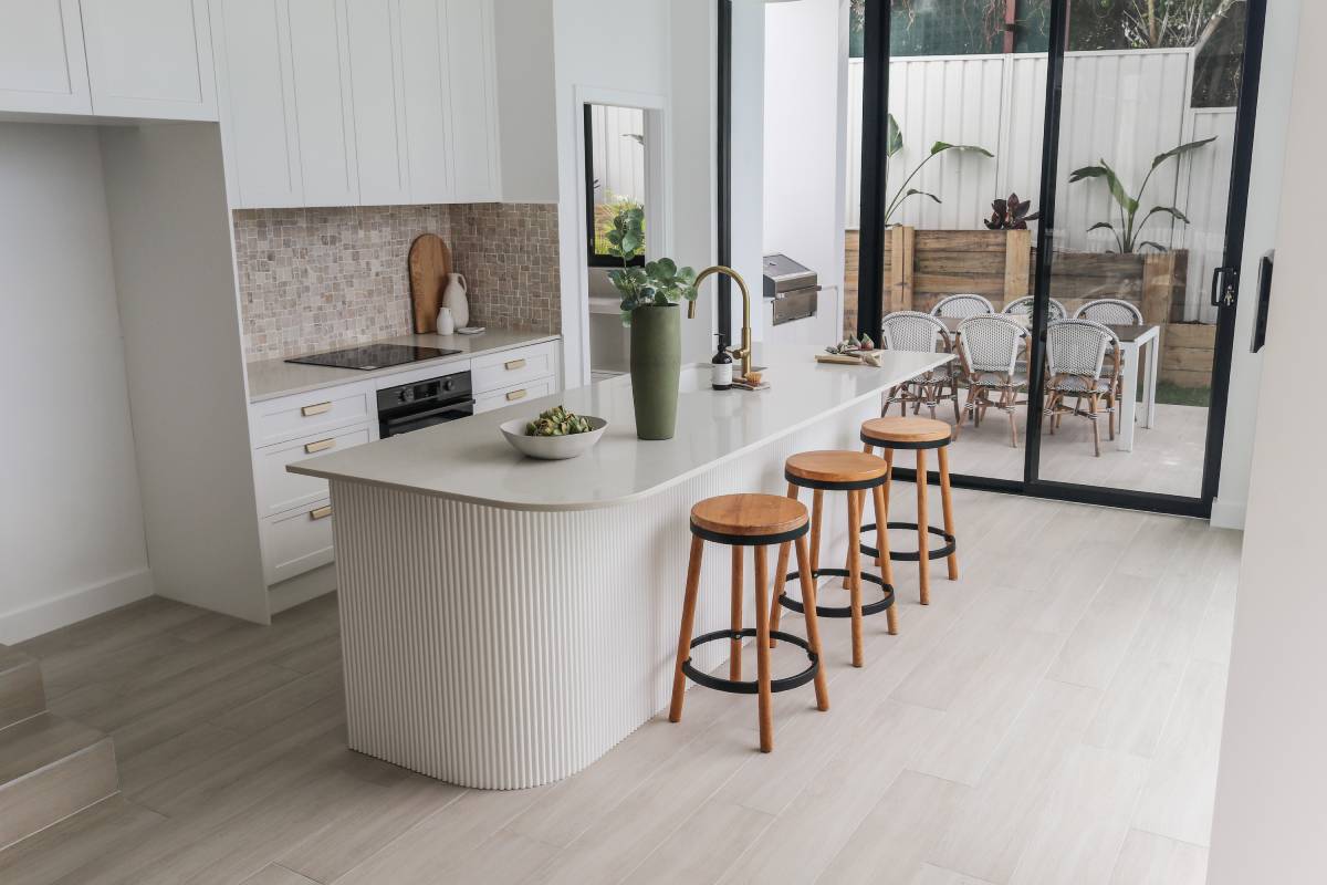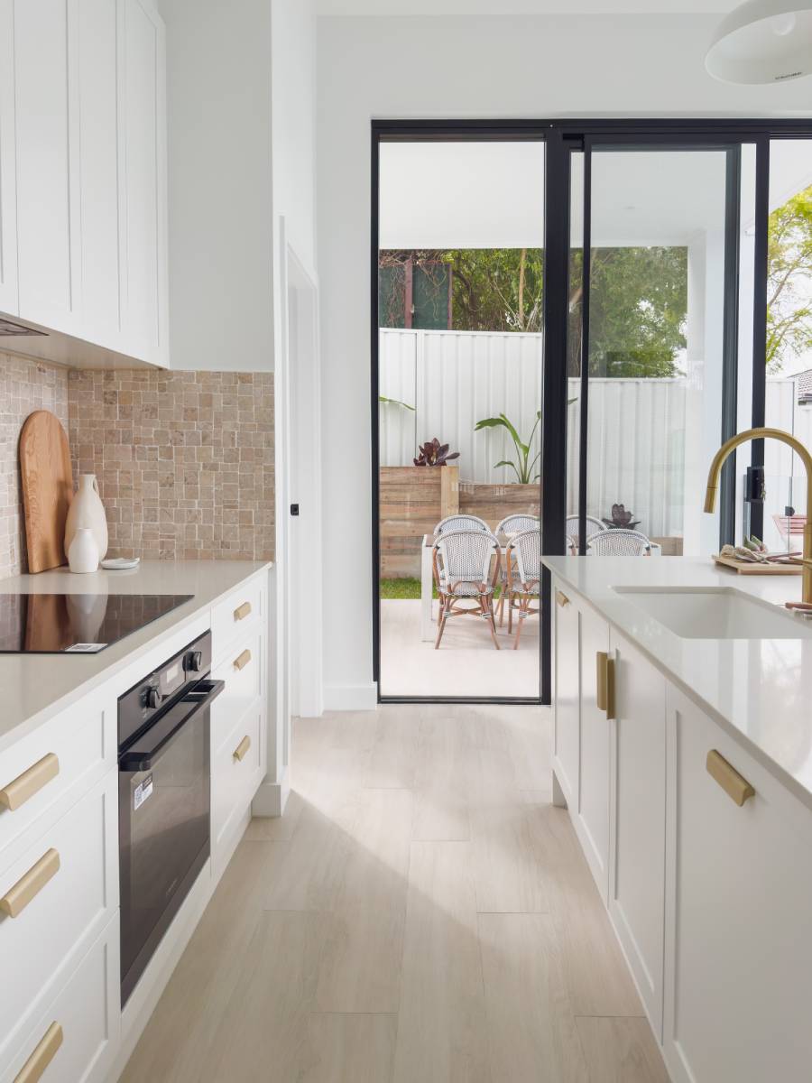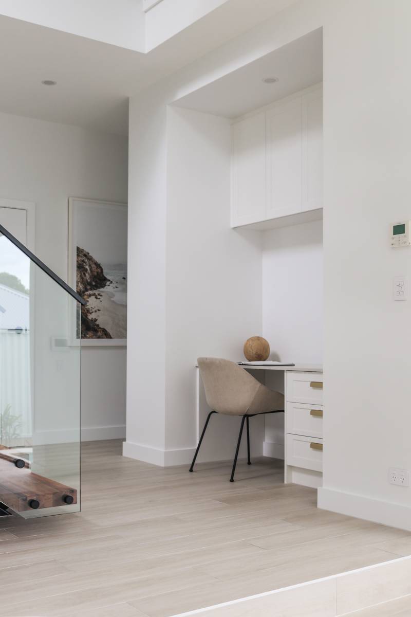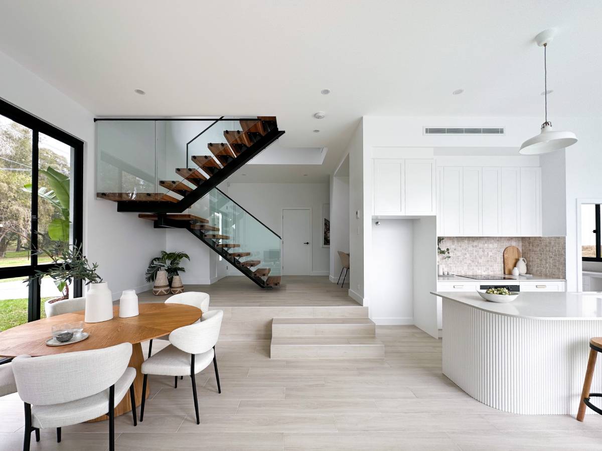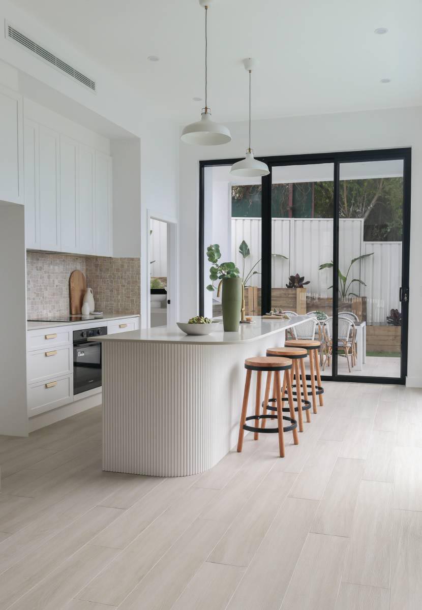 This project epitomises modern family living with an emphasis on light and spatial volume. The use of soft, sandy-toned floor tiles creates an airy foundation that harmonises with the crisp white joinery and natural timber accents. The design achieves a warm, inviting atmosphere that feels both expansive and grounded, perfect for a high-end suburban sanctuary.