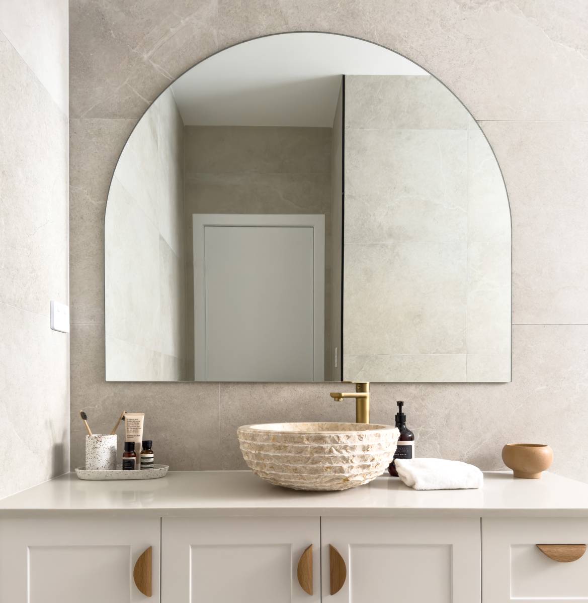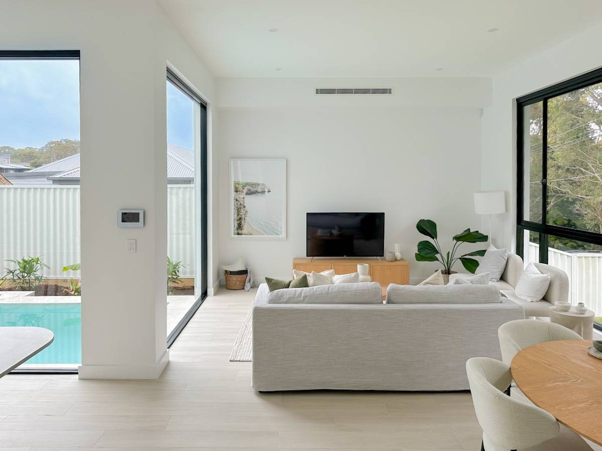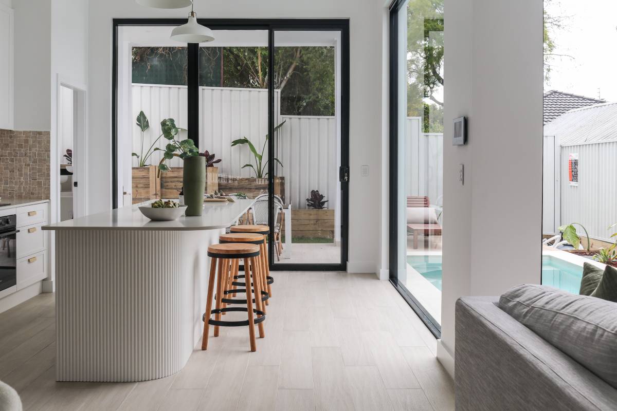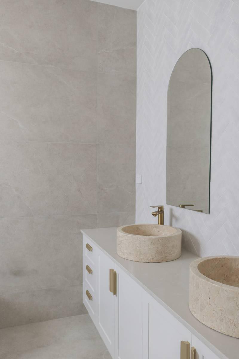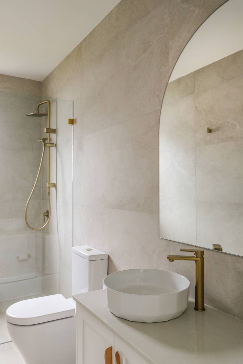 This project epitomises modern family living with an emphasis on light and spatial volume. The use of soft, sandy-toned floor tiles creates an airy foundation that harmonises with the crisp white joinery and natural timber accents. The design achieves a warm, inviting atmosphere that feels both expansive and grounded, perfect for a high-end suburban sanctuary.