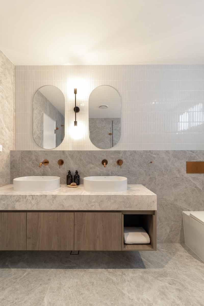 The Swan Project highlights modernist elegance, utilising a refined palette of soft greys and crisp whites to define its architectural silhouette. By integrating premium porcelain surfaces that reflect natural light, the design achieves an airy, open-plan feel that is ideal for high-end Australian residential projects seeking a minimalist edge.
