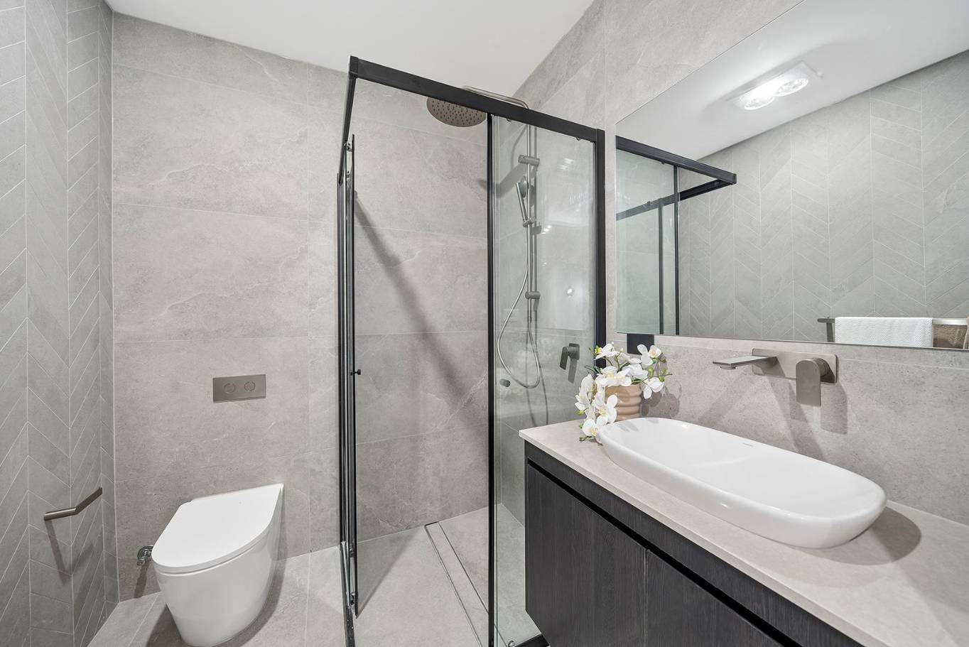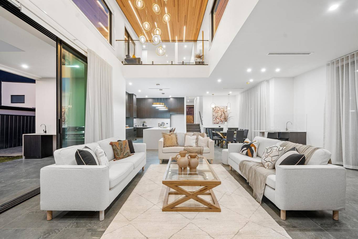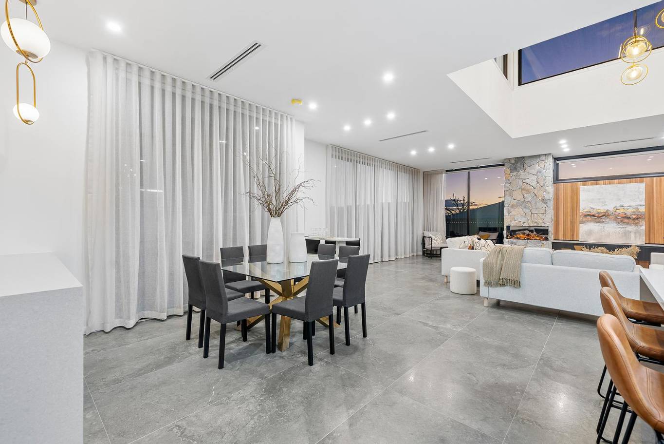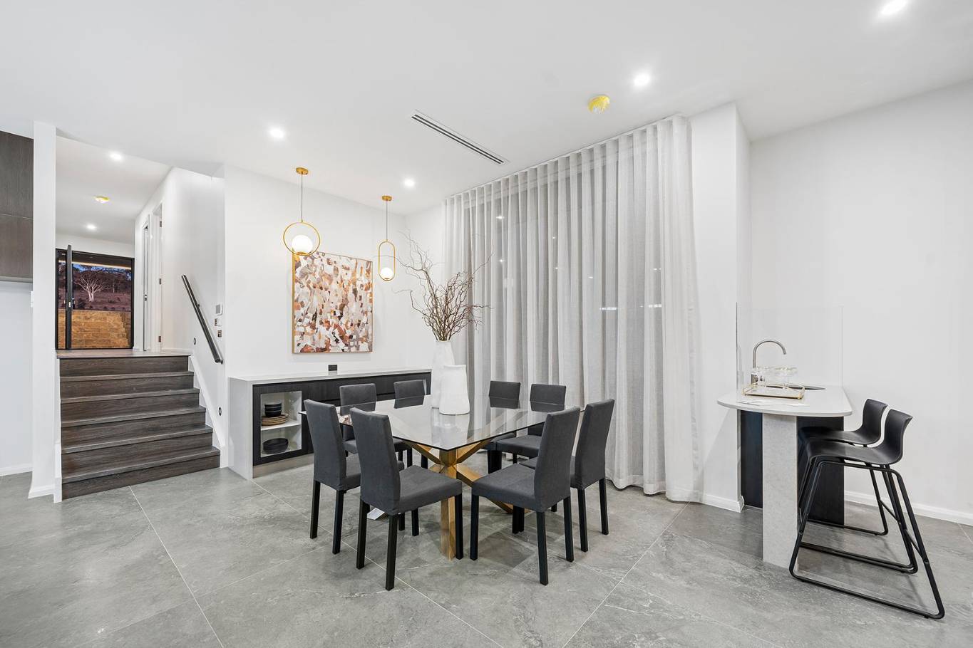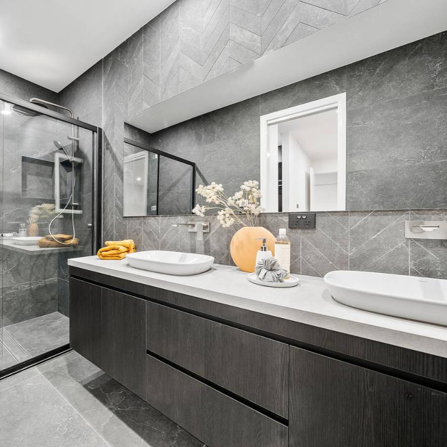 A masterclass in tonal minimalism, this project utilizes a palette of soft sands and muted greys to achieve a serene, organic feel. The stone-look porcelain in the wet areas offers a robust, low-maintenance solution for the modern Australian home without compromising on architectural elegance.