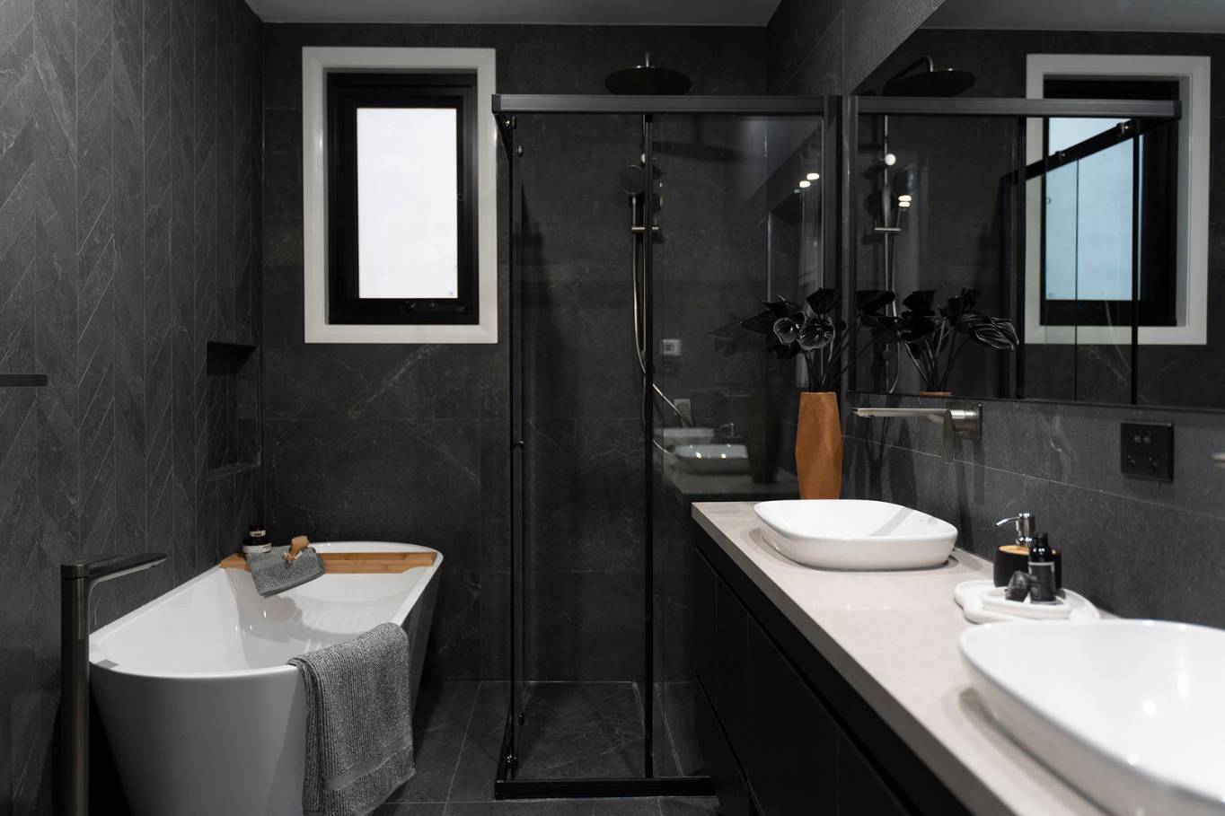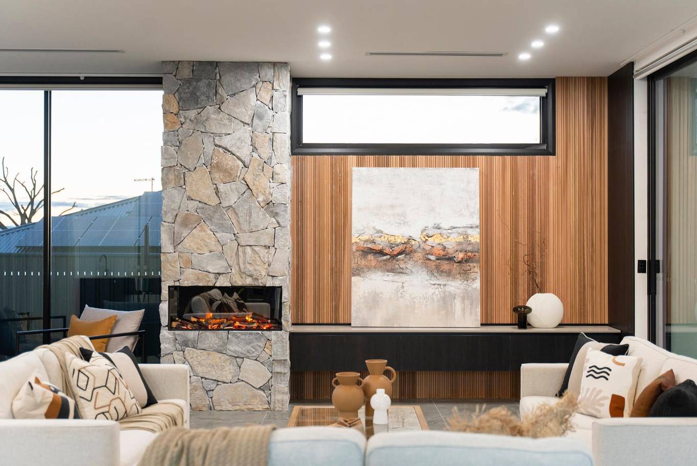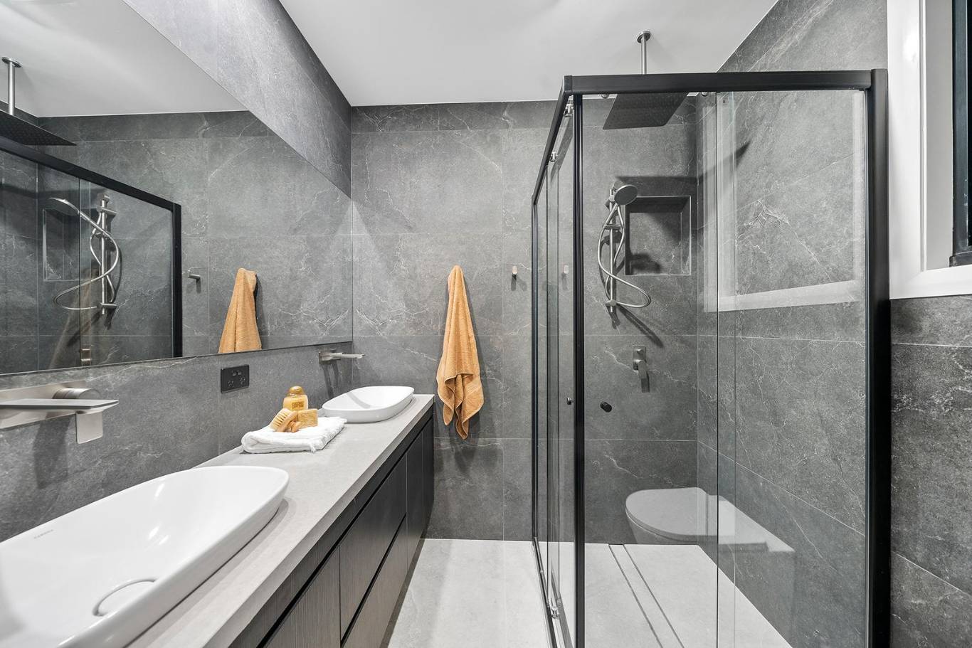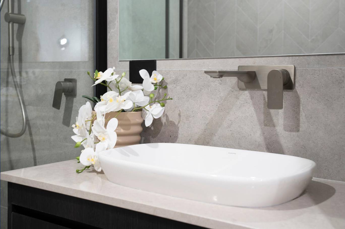 A masterclass in tonal minimalism, this project utilizes a palette of soft sands and muted greys to achieve a serene, organic feel. The stone-look porcelain in the wet areas offers a robust, low-maintenance solution for the modern Australian home without compromising on architectural elegance.