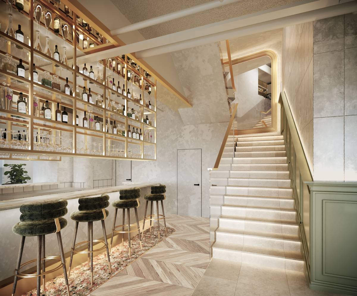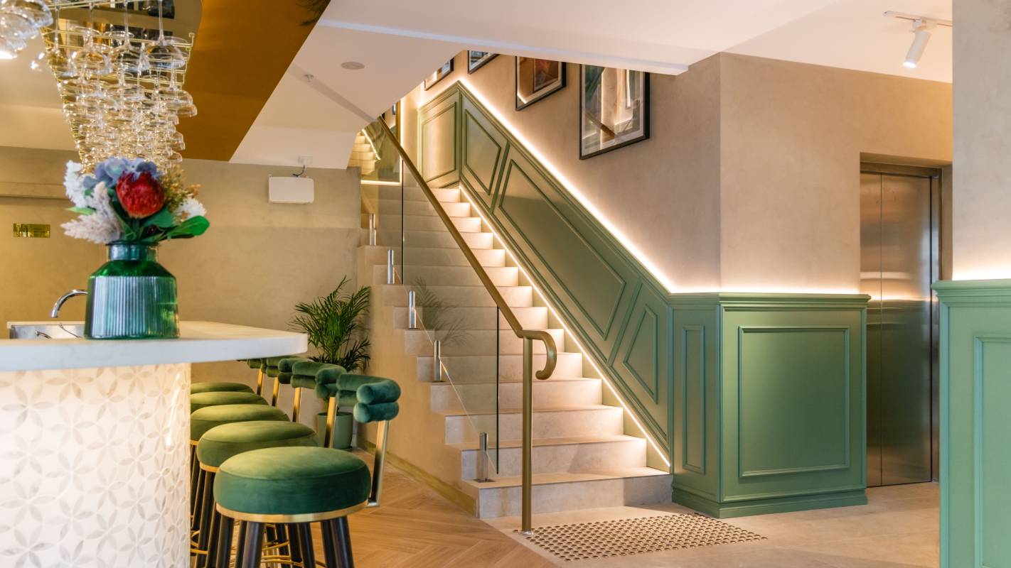 This high-end commercial fit-out showcases commercial interior excellence, featuring the striking Travertine 3D Warm Cross Cut alongside Botany Haya Timber tiles. The combination of textured stone-look surfaces and warm timber tones creates an inviting, upscale atmosphere that perfectly captures the essence of boutique hospitality design.