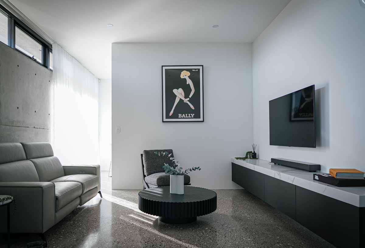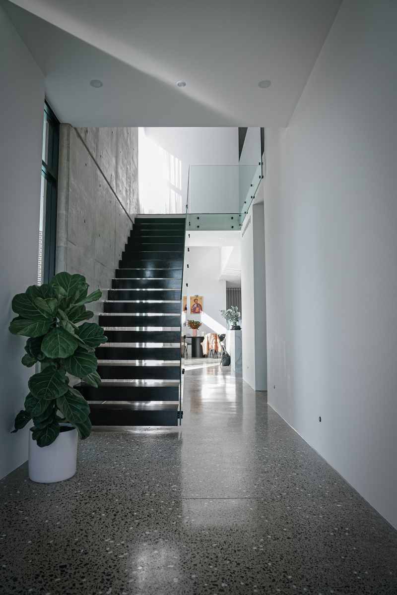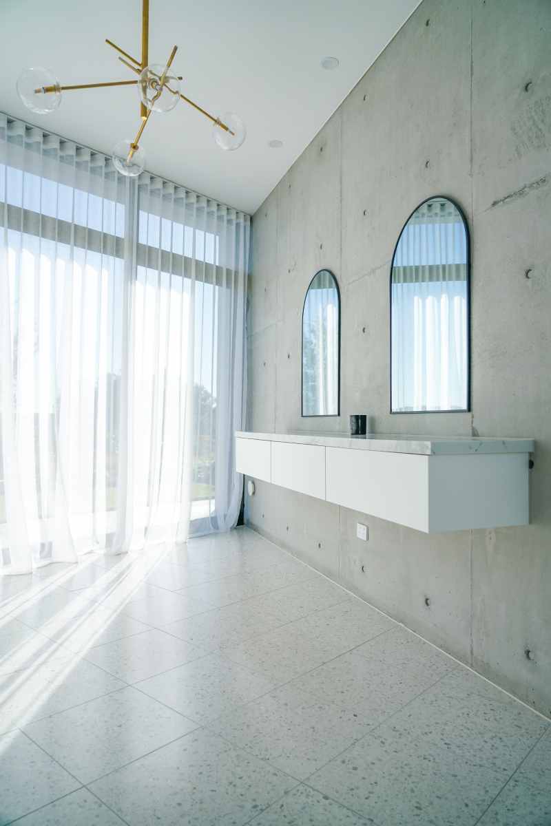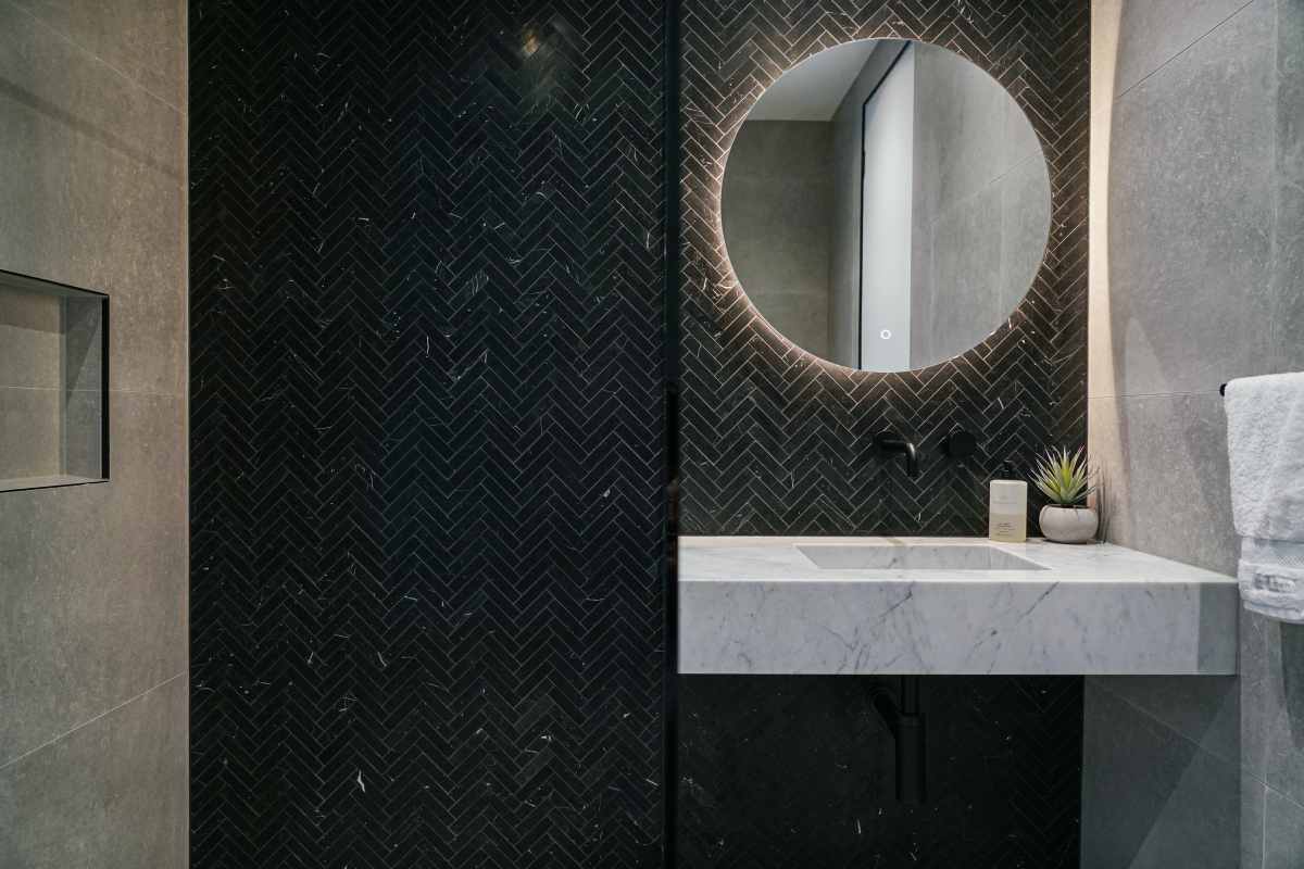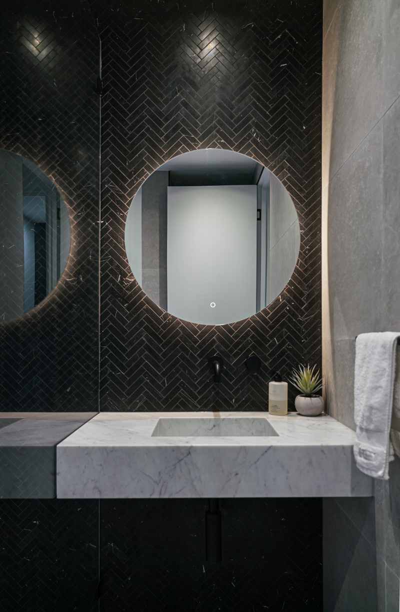 This project beautifully harmonises texture and tone by pairing Kit Kat White Matt mosaics with the robust character of Big Rock Terrazzo Light Grey. The bathroom and laundry spaces utilise these tactile surfaces to achieve a modern, organic aesthetic, while the Ceppo Light Matt and Layla Miami selections ensure a seamless transition for outdoor architectural tiling.