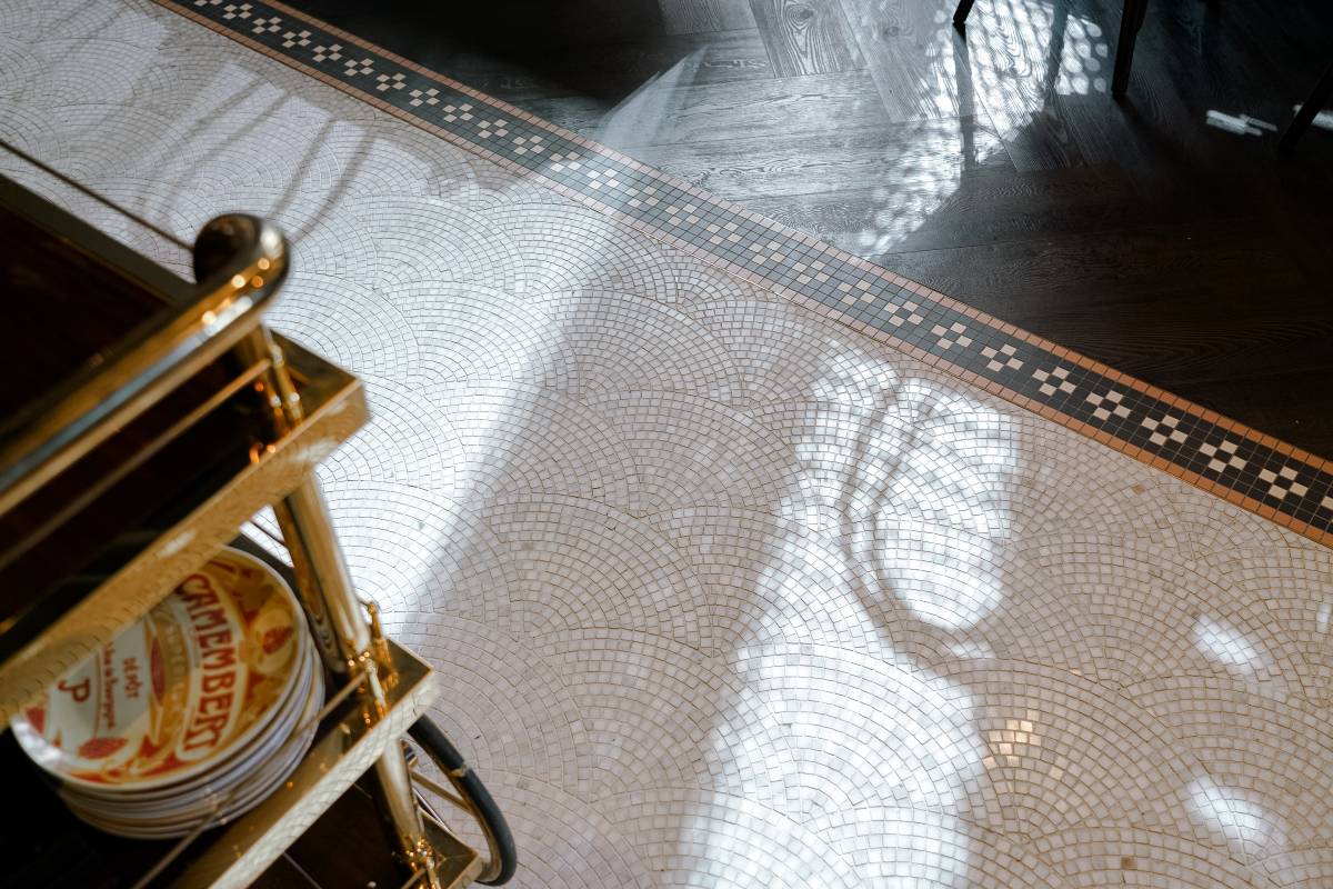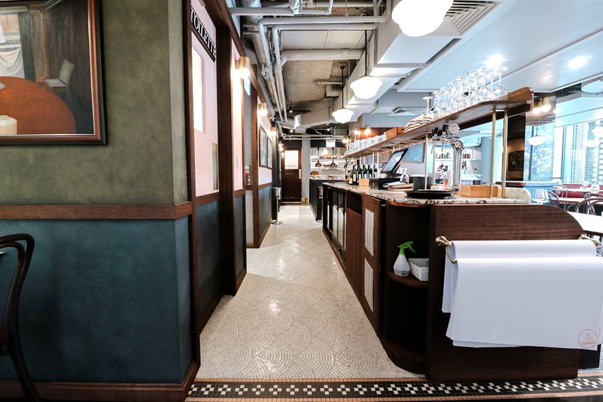 This interior achieves a sophisticated European bistro feel through a masterful layering of textures and classic tones. The design...
