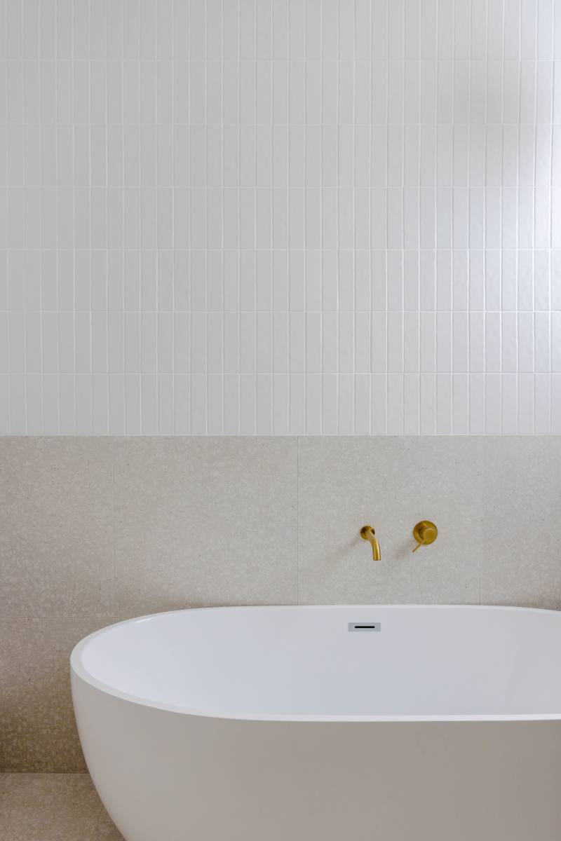 une Place showcases a warm, organic palette that perfectly complements its architectural form. The use of soft-veined porcelain and...