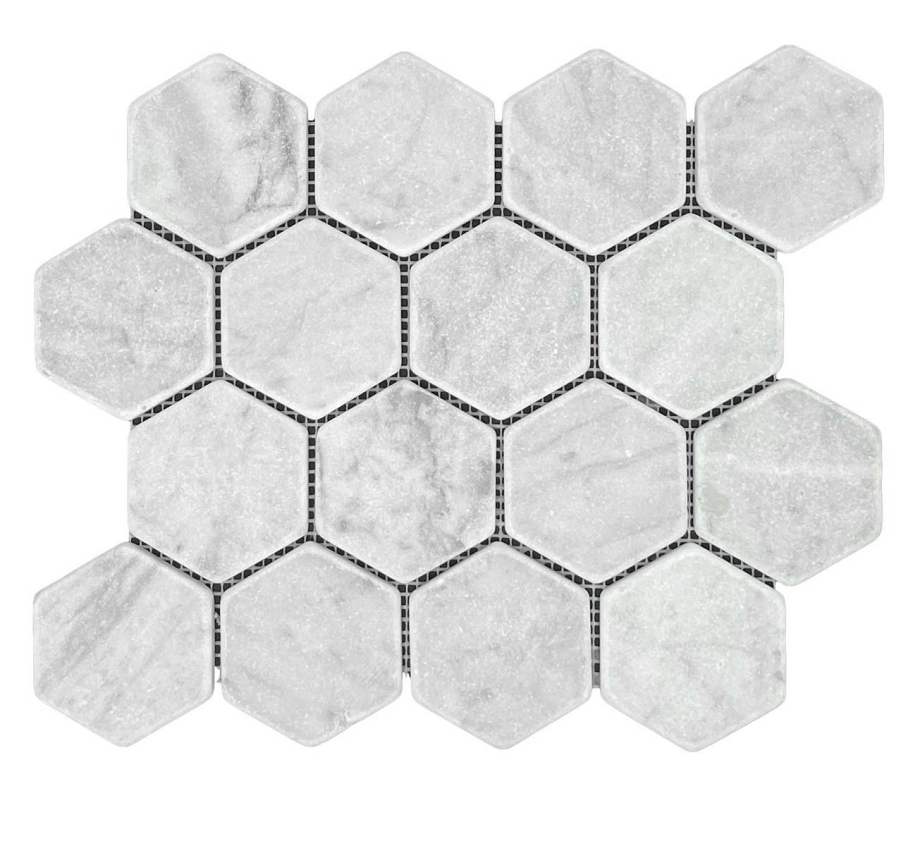 Embodying timeless luxury, the Hexagon Carrara 73 mosaic tiles offer an exquisite design statement. Crafted from premium natural stone, these tiles feature a beautiful tumbled finish that highlights the classic, subtle grey veining inherent in Carrara, adding depth and character. Ideal for creating stunning bathroom feature walls, elegant kitchen splashbacks, or unique floor accents, their intricate design elevates any high-end interior. The natural stone material ensures enduring beauty and a truly sophisticated touch for discerning architects and designers. Add to idea basket.