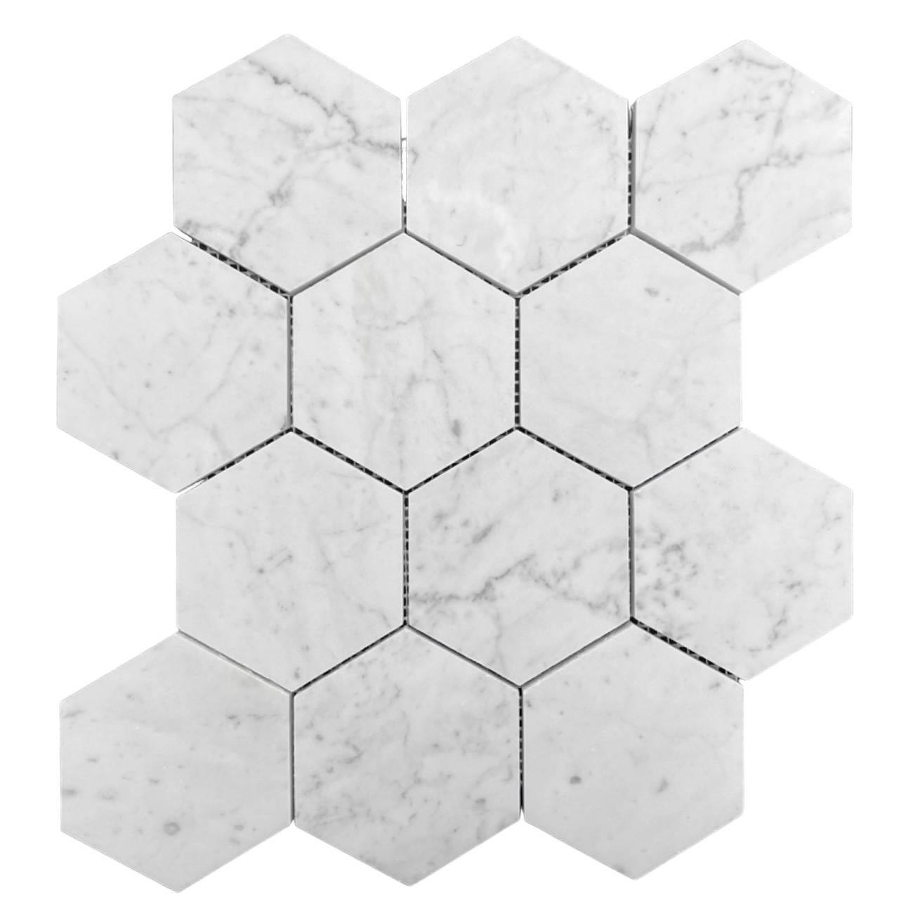 Embrace the timeless sophistication of our Hexagon Carrara 90 mosaic tiles. Crafted from premium natural Carrara stone, these exquisite hexagon tiles feature a delicate honed finish, revealing the unique, soft grey veining inherent in high-end natural stone. Perfect for creating luxurious bathroom feature walls, elegant kitchen splashbacks, or stunning floor accents, these Carrara mosaic tiles offer unparalleled depth and character. The sheeted format ensures easy installation, bringing enduring beauty to any architectural or interior design project. Elevate your space with this truly premium choice. Add these exceptional tiles to your idea basket.