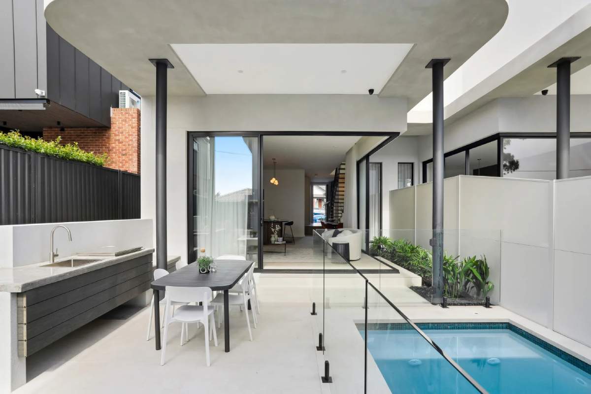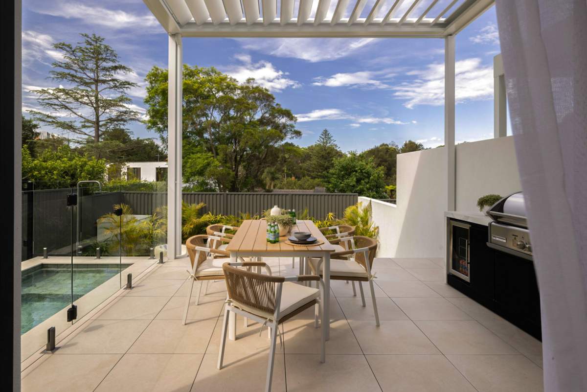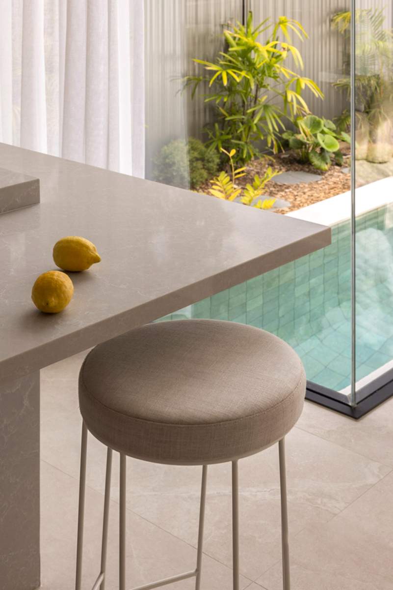 A masterclass in seamless indoor-outdoor flow, this residence utilises the Maestro Sand series across the kitchen, lounge, and bathroom....