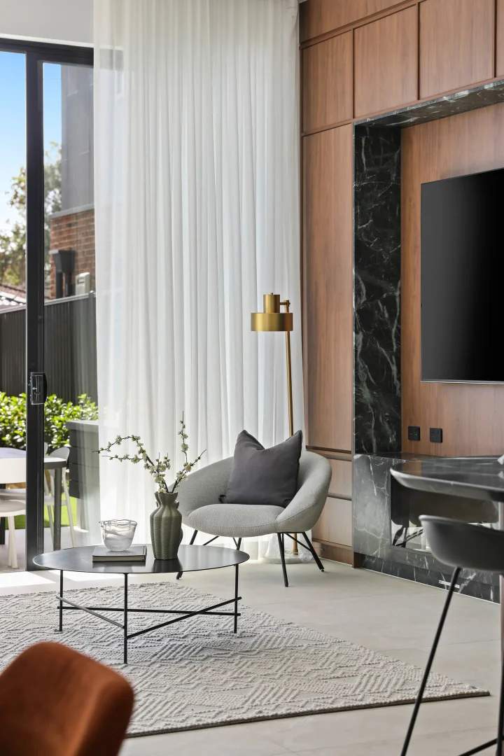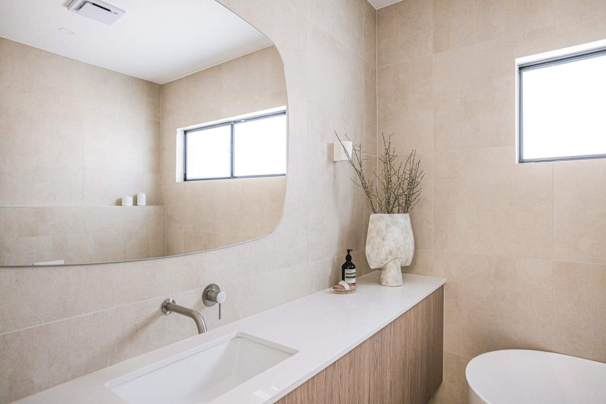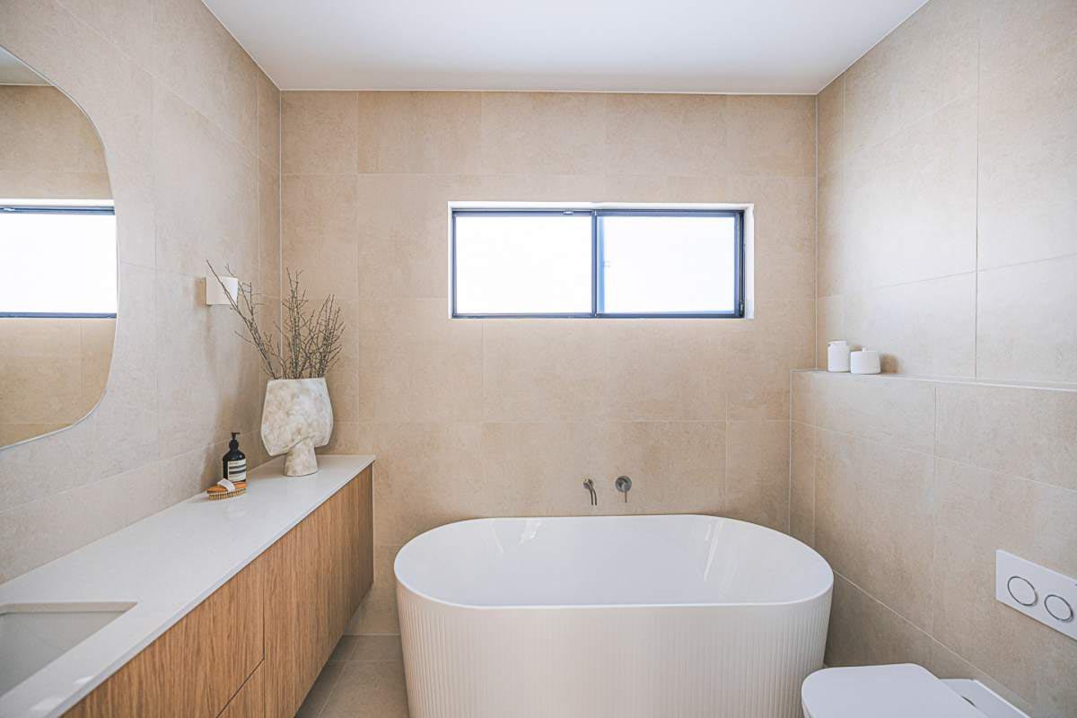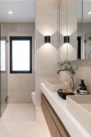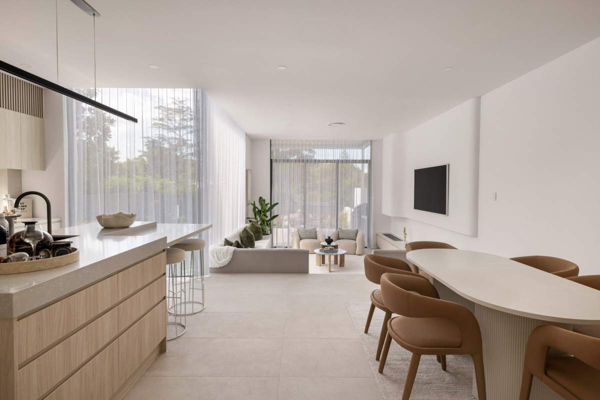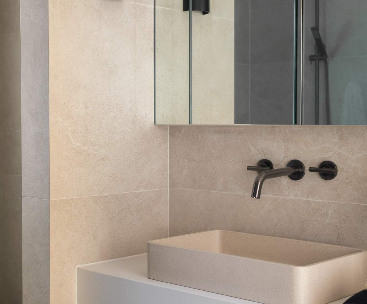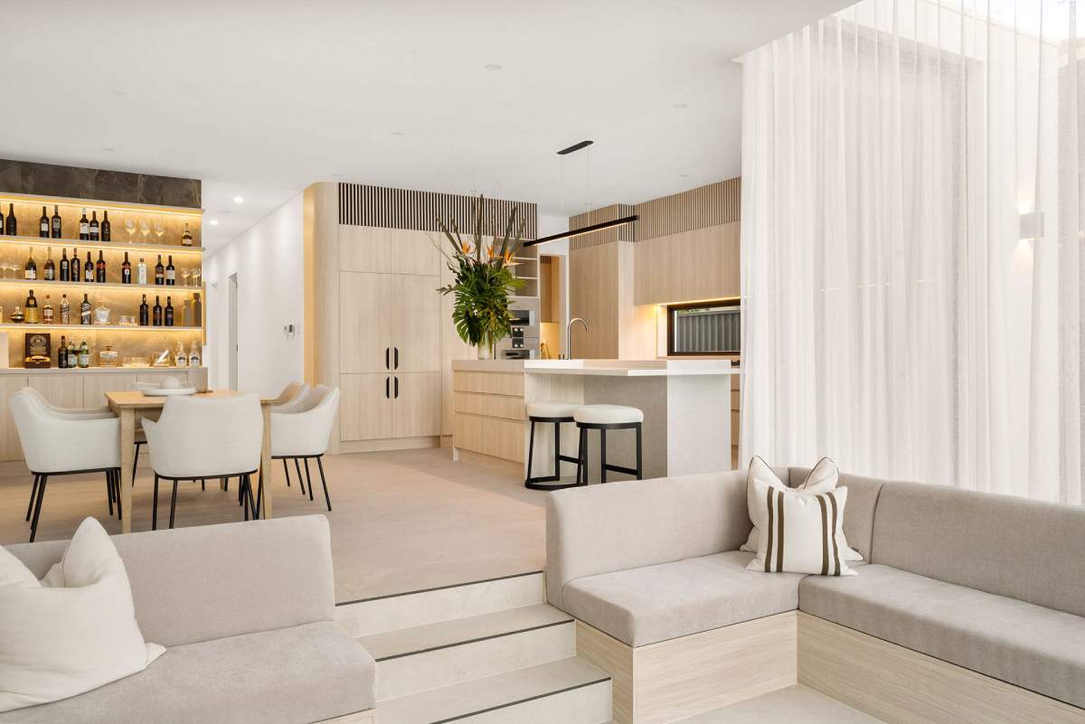 A masterclass in seamless indoor-outdoor flow, this residence utilises the Maestro Sand series across the kitchen, lounge, and bathroom....