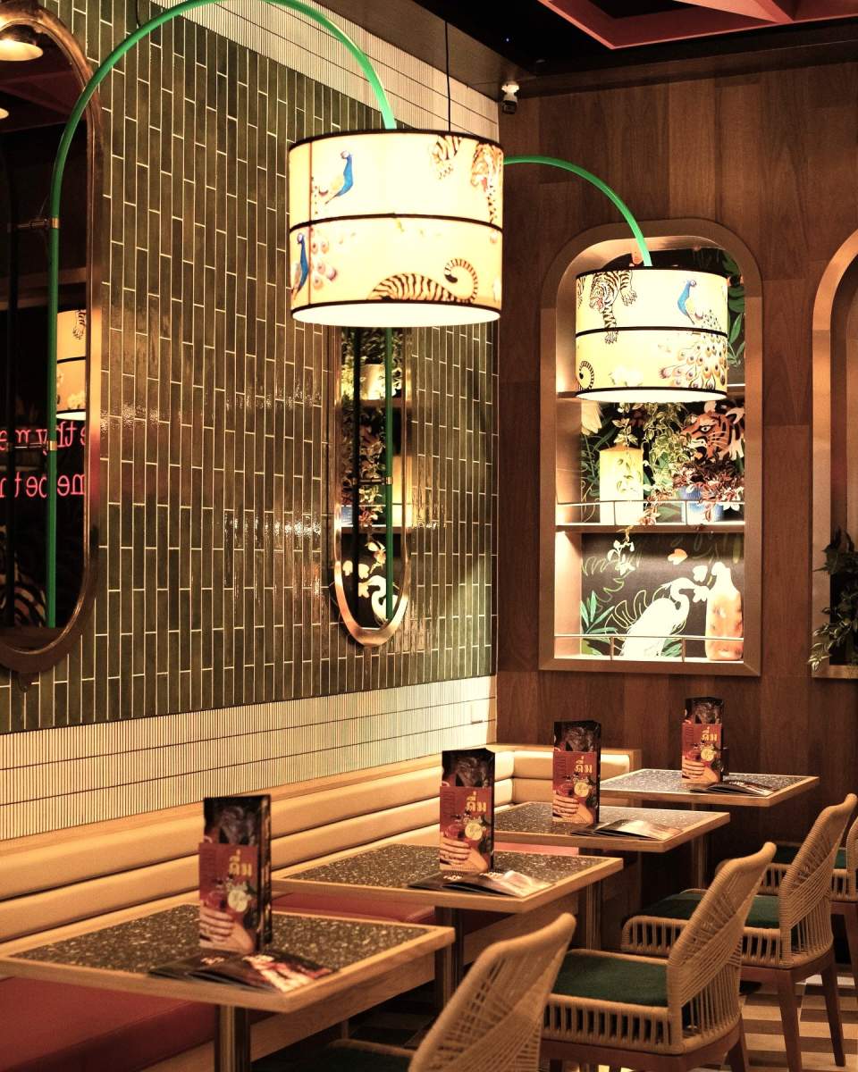 Kinn Thai Restaurant showcases a rich and inviting interior brought to life through a layered mix of textures, colours, and patterns....