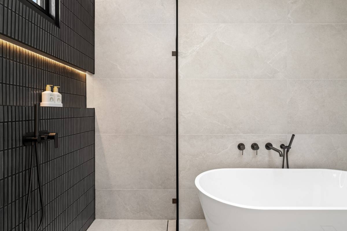 The Pagewood Project features Maestro Moon, a stone‑look porcelain tile with soft, silvery‑grey tones that create a calm,...