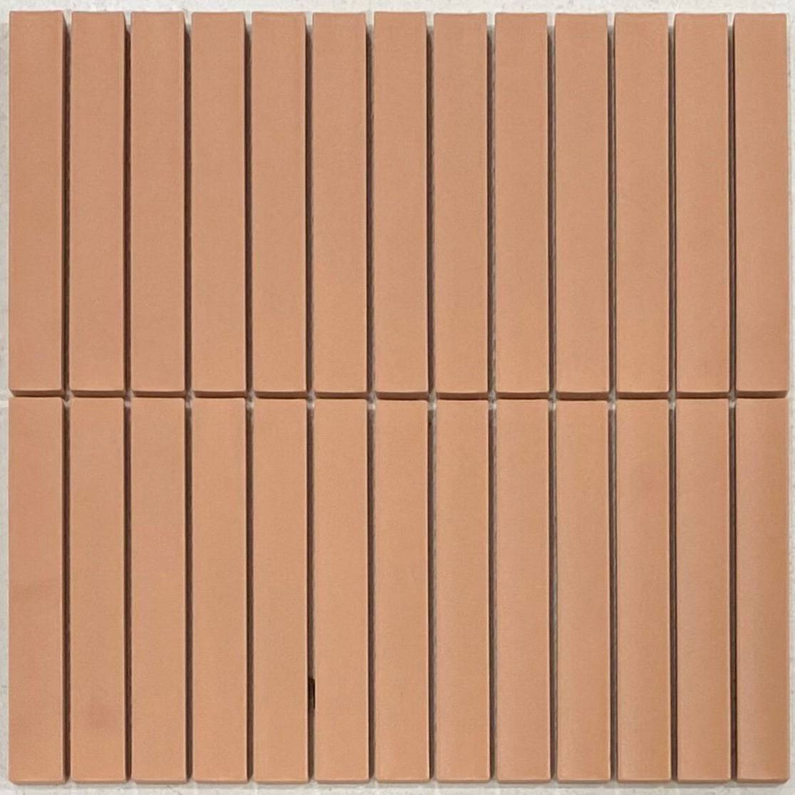 The Rakeen Unglazed Terracotta Kit Kat tiles express an artisanal charm, bringing warmth and character to any space. These premium porcelain mosaic tiles feature a distinctive linear chip design with an inviting matt finish, evoking the natural beauty of traditional terracotta. Perfect for creating striking feature walls, elegant kitchen splashbacks, or luxurious bathroom accents, their versatile sheet format (Chip 20×145 – Sheet 296×299) allows for intricate design. Crafted from durable porcelain, these high-end tiles offer lasting beauty and require minimal maintenance, ideal for both residential and commercial projects. Add these unique terracotta Kit Kat mosaic tiles to your idea basket.