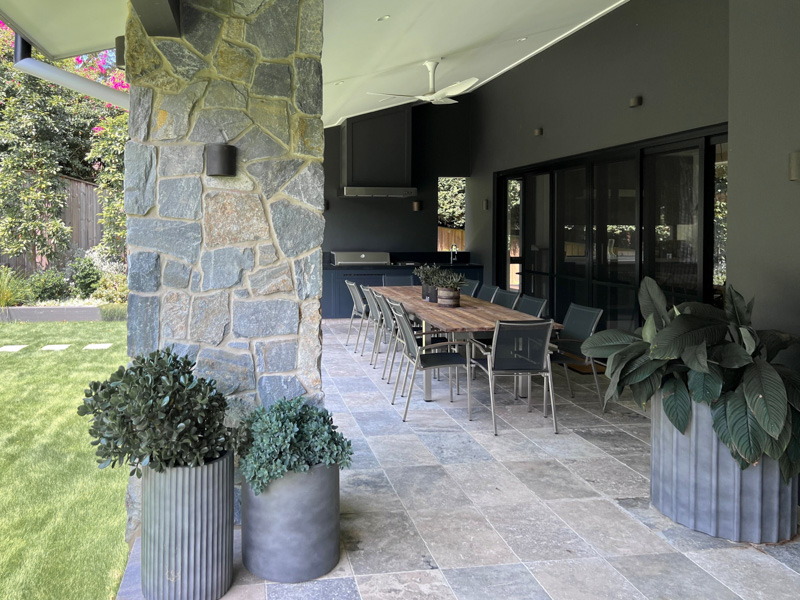 This project features a bold yet refined selection of finishes, where deep tonal contrasts add architectural depth to the wet areas. The...