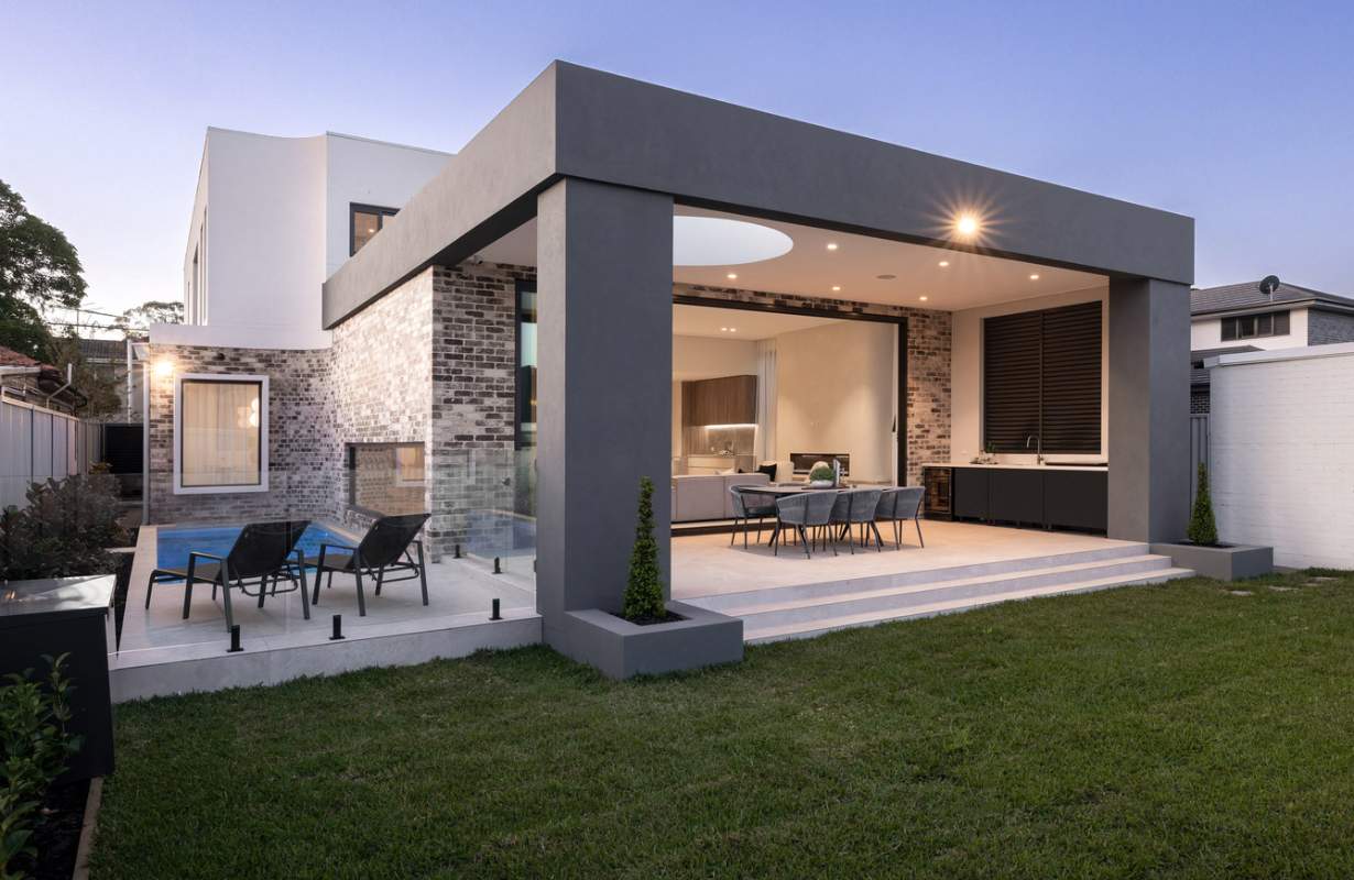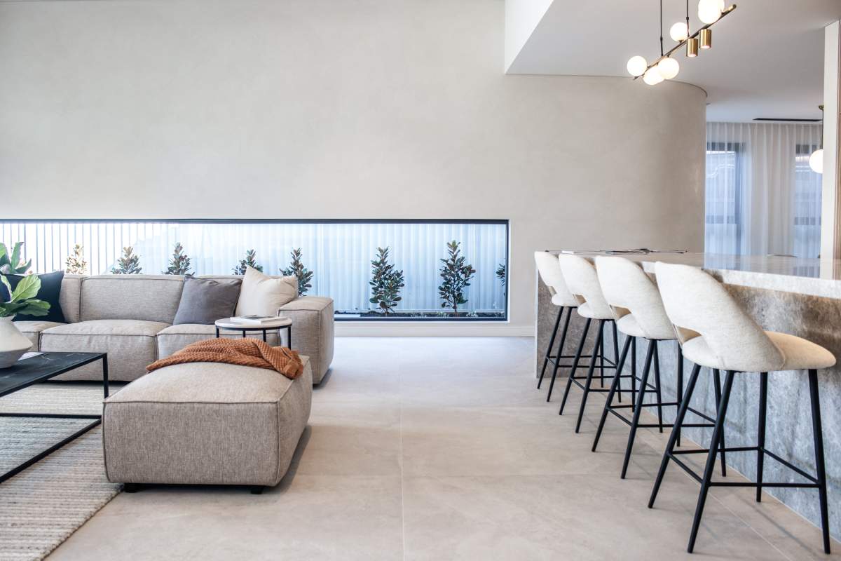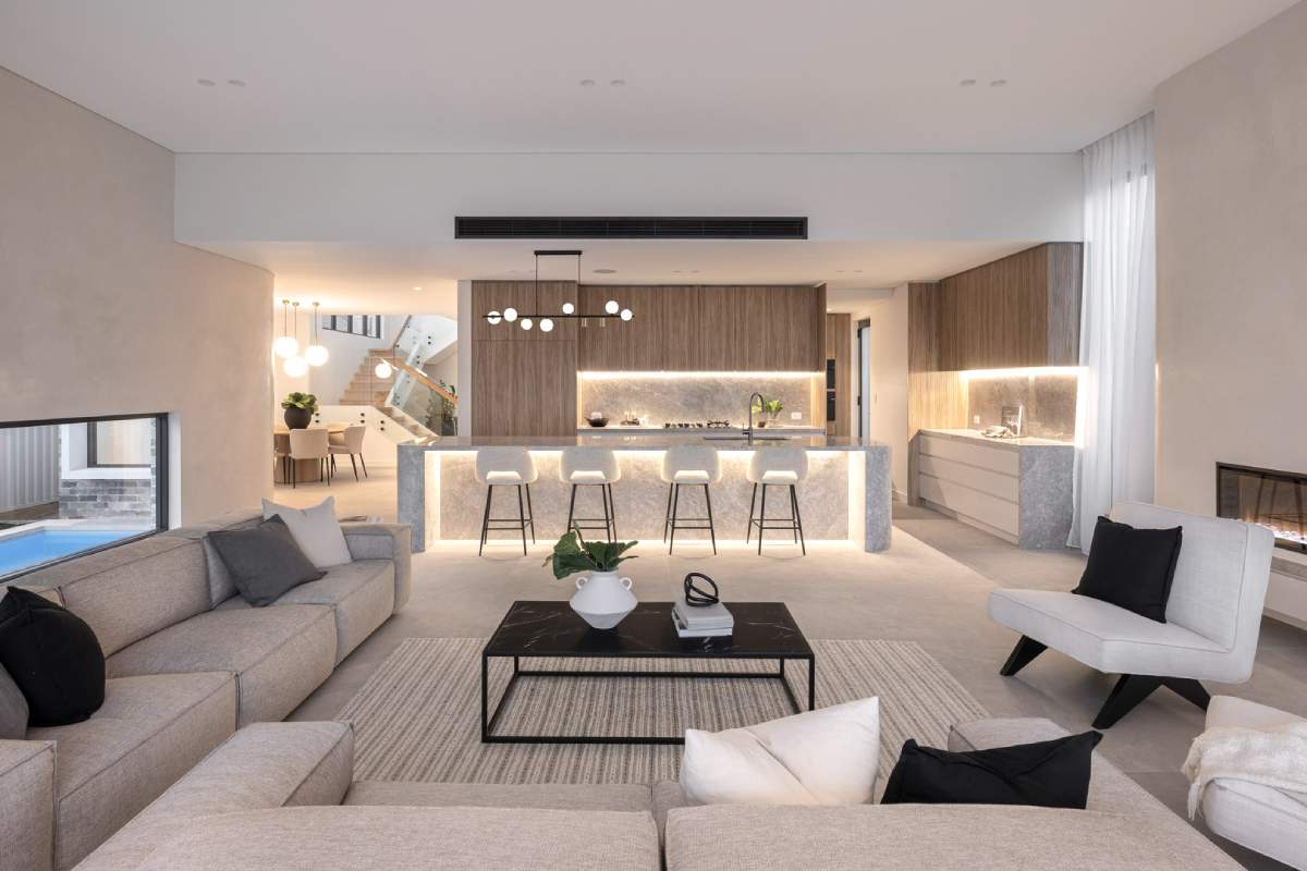 The design is elevated by the inclusion of natural stone cladding and slate-look porcelain, which help blur the boundaries between the...