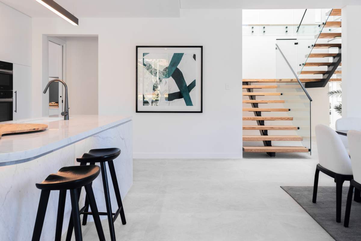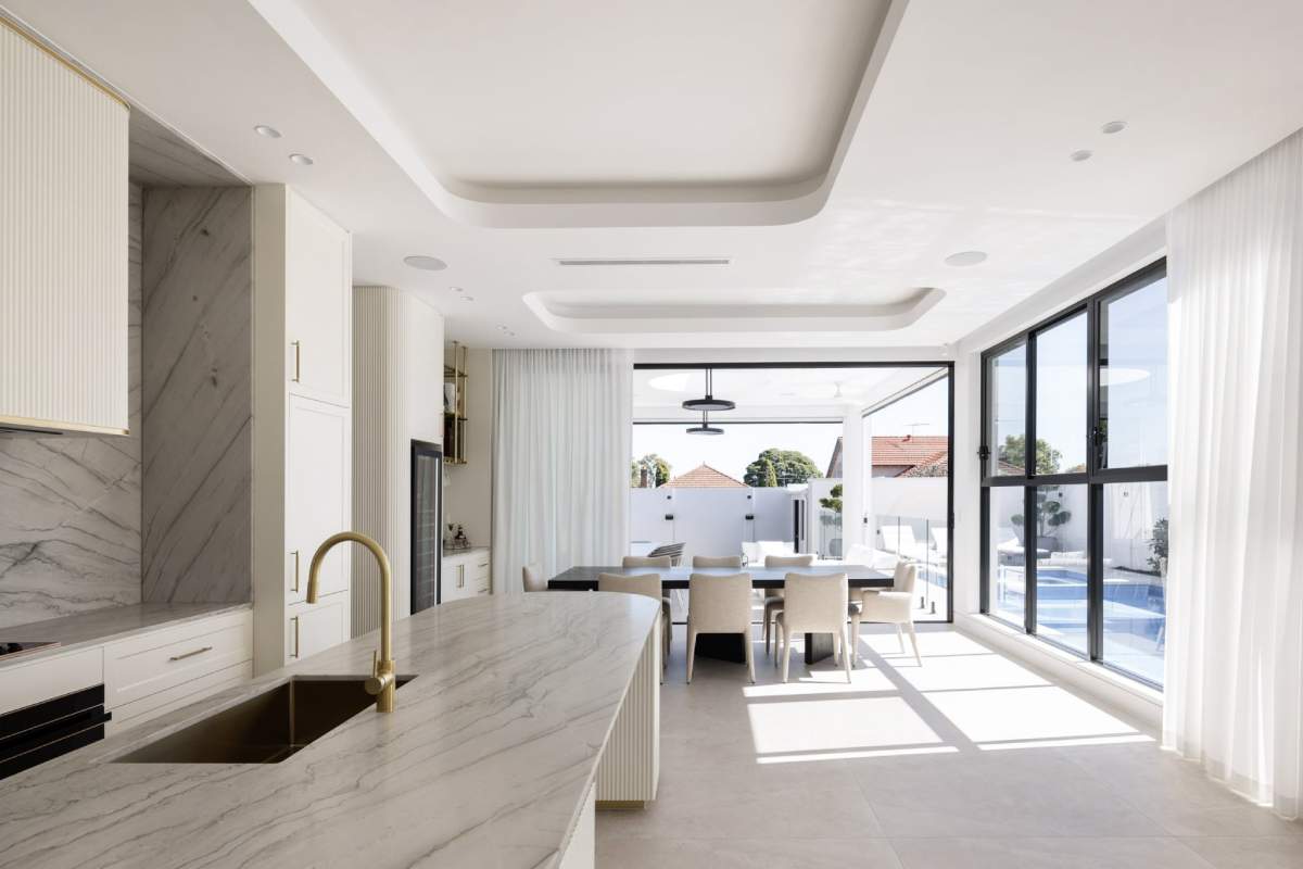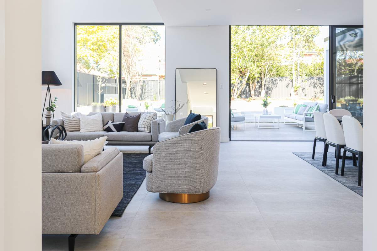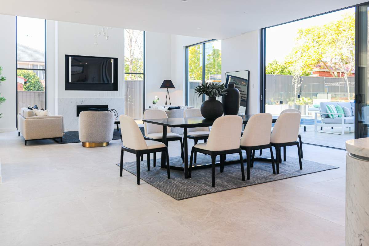 The design is elevated by the inclusion of natural stone cladding and slate-look porcelain, which help blur the boundaries between the...