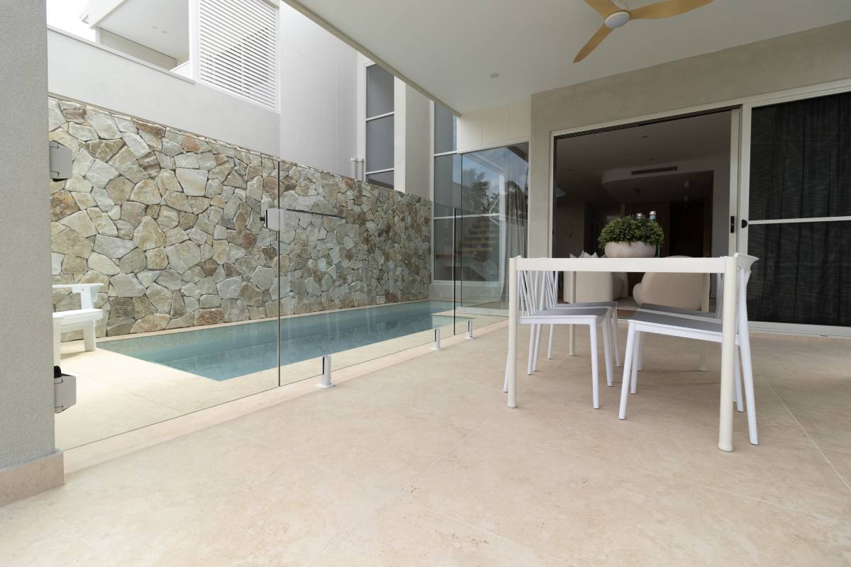 This high-end commercial fit-out showcases commercial interior excellence, featuring the striking Travertine 3D Warm Cross Cut alongside...