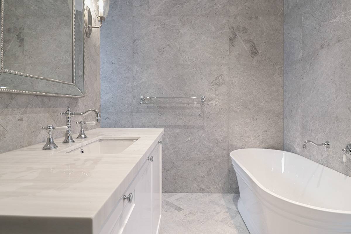The Alpine Project demonstrates modernist design through the use of large-format tiles that create a clean, monolithic surface...