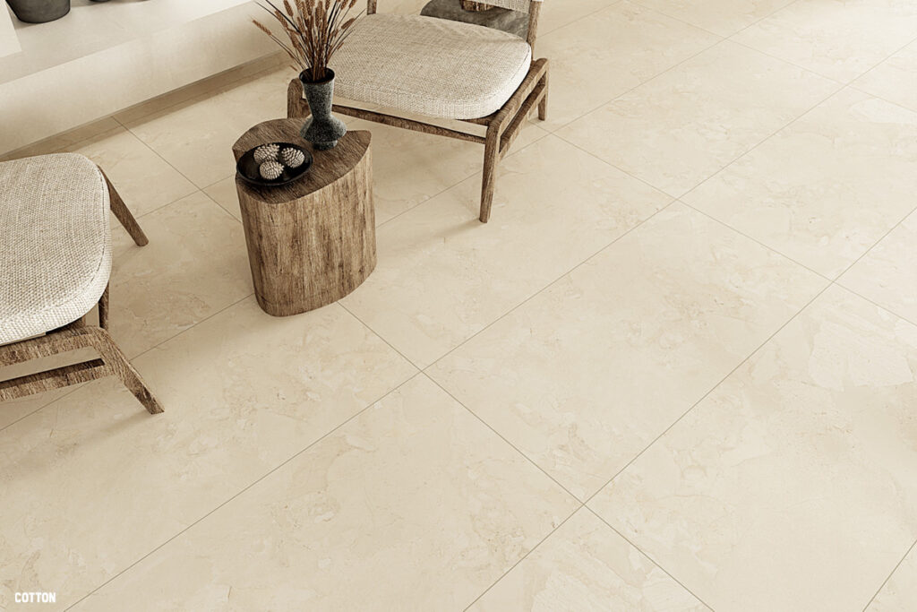 In open-plan living or expansive commercial lobbies, rectified large-format porcelain tiles amplify the perception of scale.